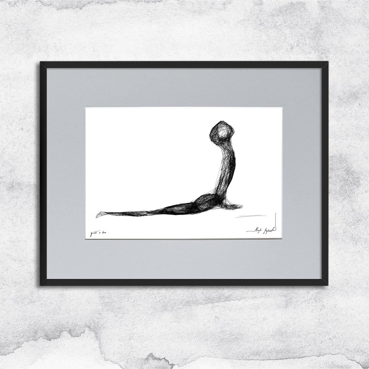 Grafika wykonana techniką mieszaną (giclée+rysunek isografem) na białym, matowym o lekko fakturowanej powierzchni, graficznym papierze Canson 160g. Unikalna kreska wygląda bardzo efektownie, zaś czarno-białe wykończenia wnętrz idealnie wpisują się w puste ściany nowoczesnych, minimalistycznych czy loftowych powierzchni.
