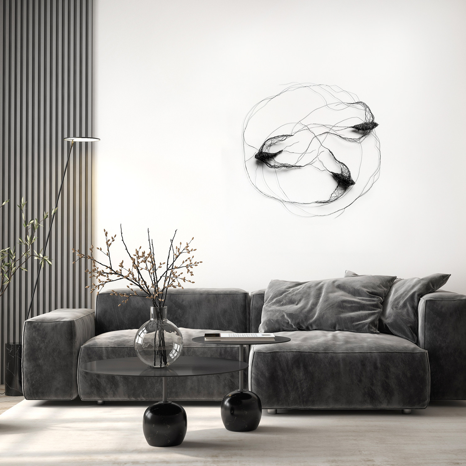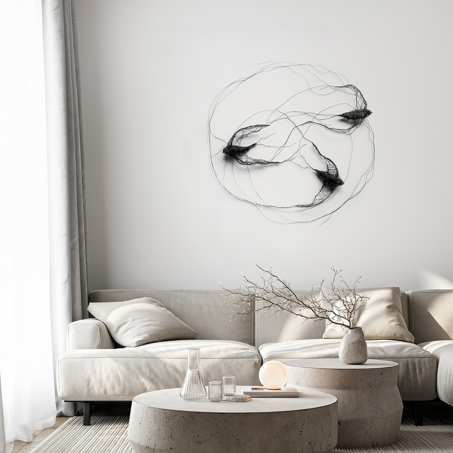Instalacja przestrzenna wykonana z metalu. Jest to nowoczesna natywa dla malarstwa. Praca daje możliwość własnej aranżacji na ścianie.