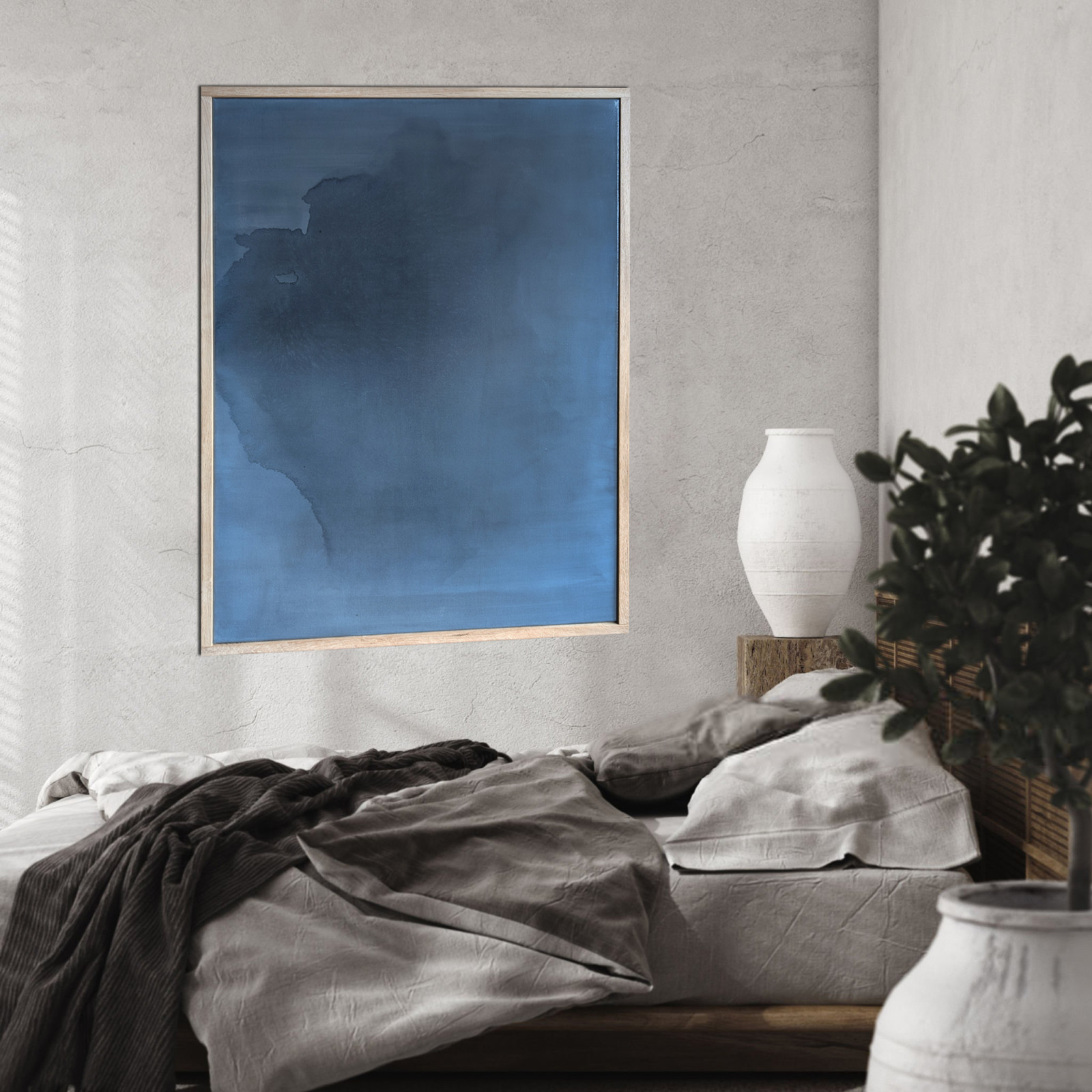 Delikatne przejścia tonalne, transparentność, brak wyraźnych konturów czy figur oraz świadome wykorzystanie efektu zbliżonego do techniki akwarelowej sprawia, że kompozycja ma charakter nastrojowy i medytacyjny.