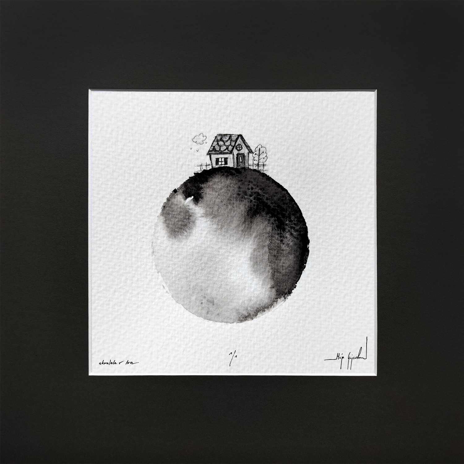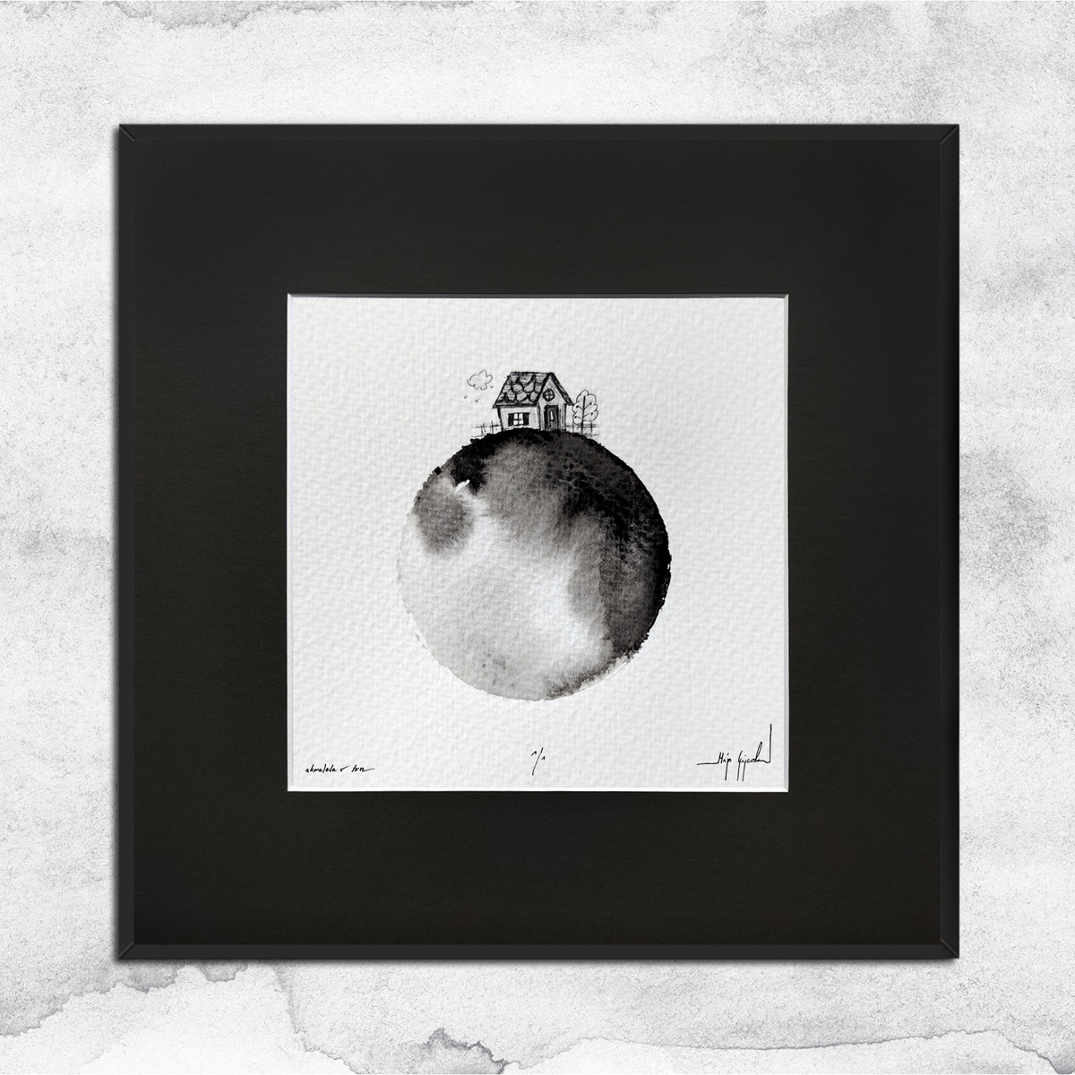 Ręcznie malowana akwarela z tuszem na białym, lekko fakturowanym papierze. Pojedyncza sztuka.