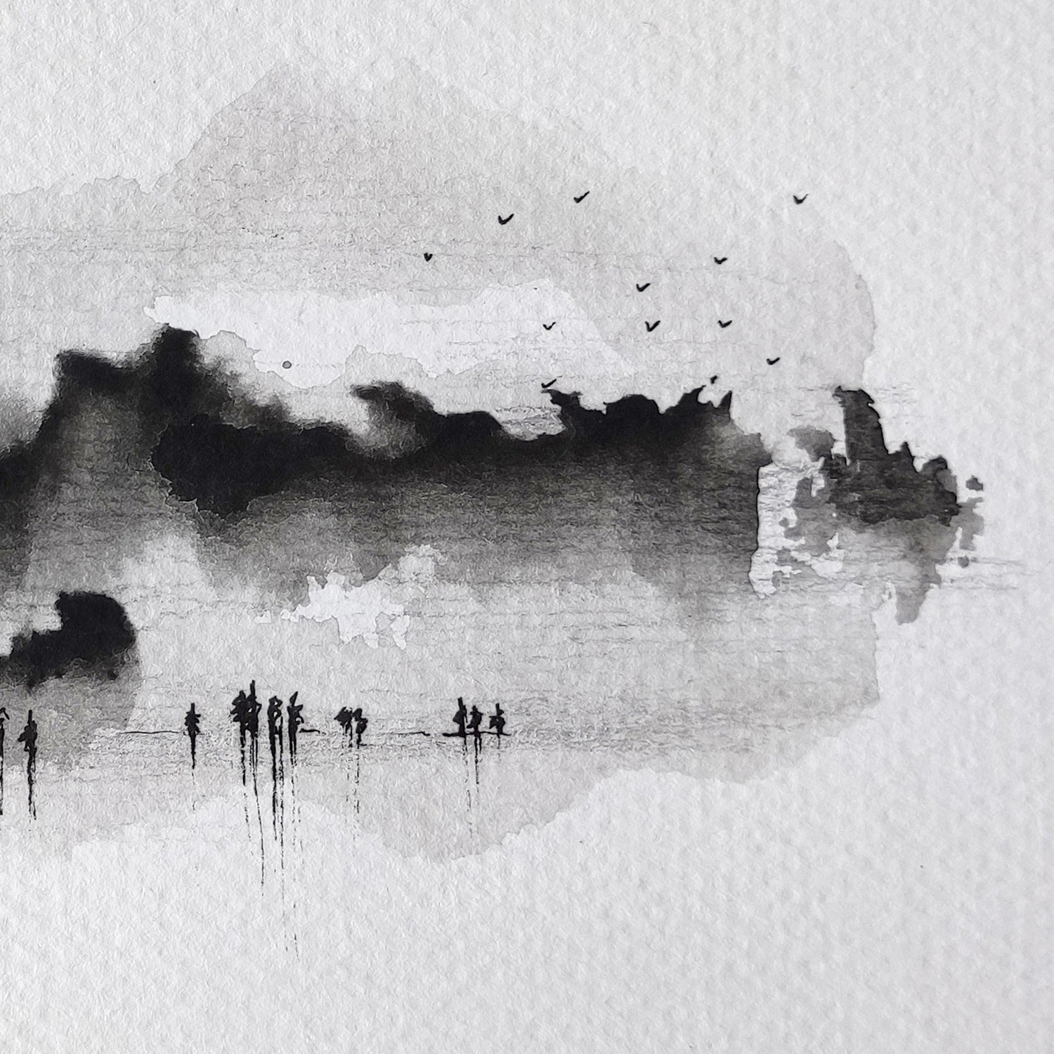 Każda z prac wykonana jest w pojedynczym egzemplarzu. Autorski rysunek wykonany w technice tusz i akwarela na białym, lekko fakturowanym, tradycyjnym papierze graficznym. Praca oprawiona jest w białe passe partout i czarną, aluminiową ramę.