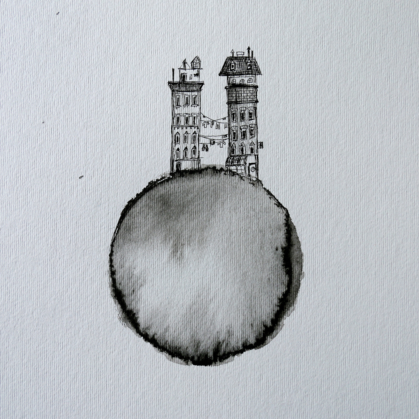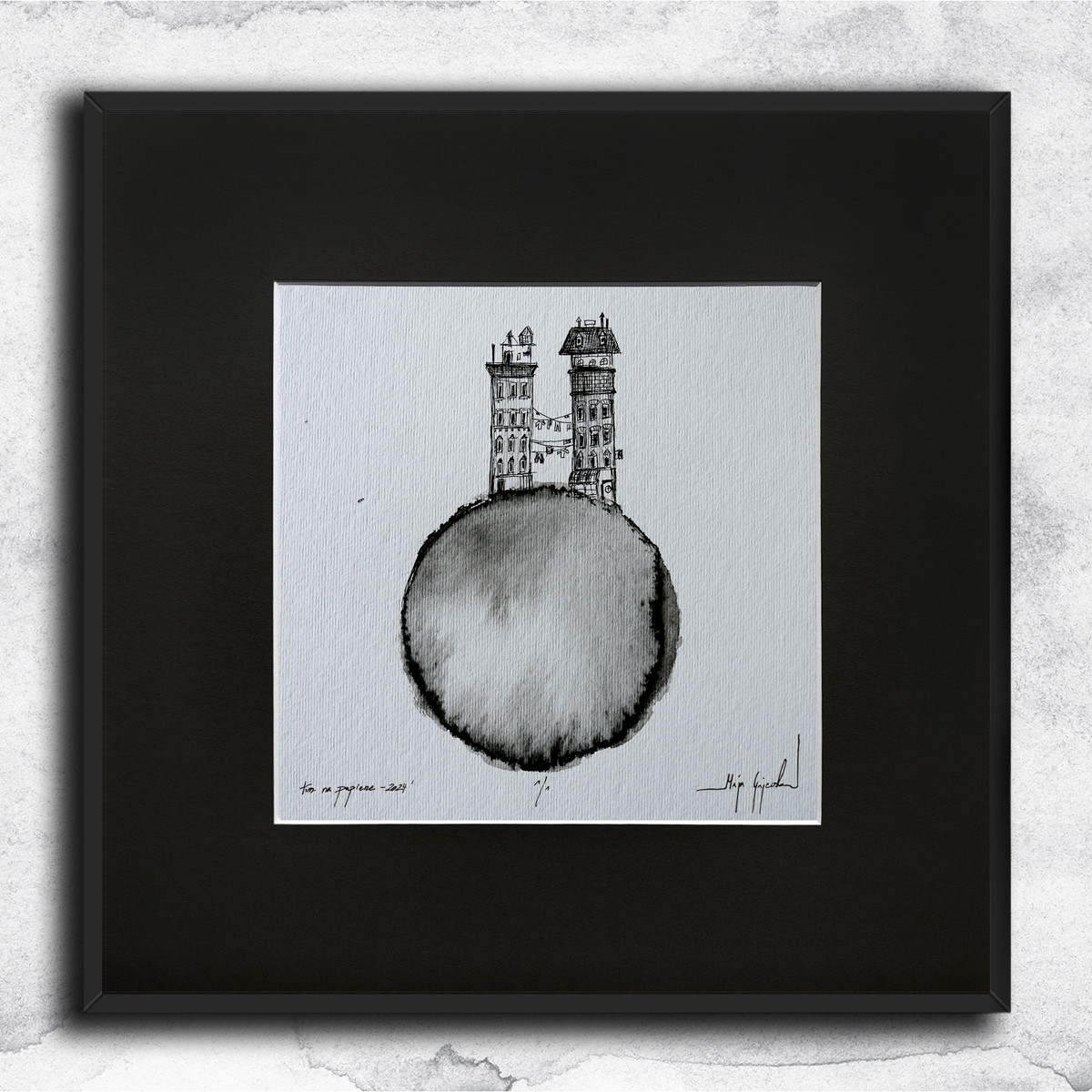 Autorski rysunek wykonany ręcznie w technice tusz na papierze.