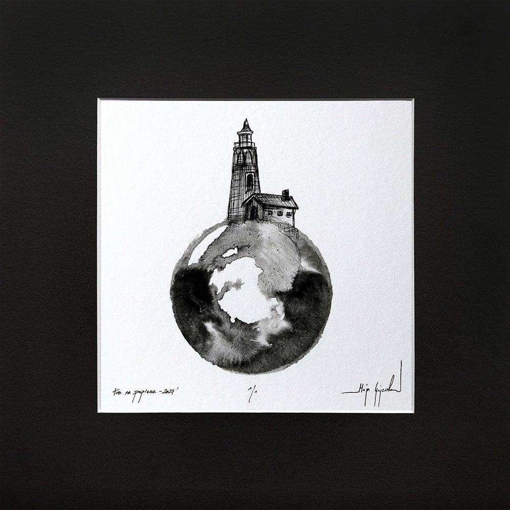 Autorski rysunek wykonany ręcznie w technice tusz na papierze.