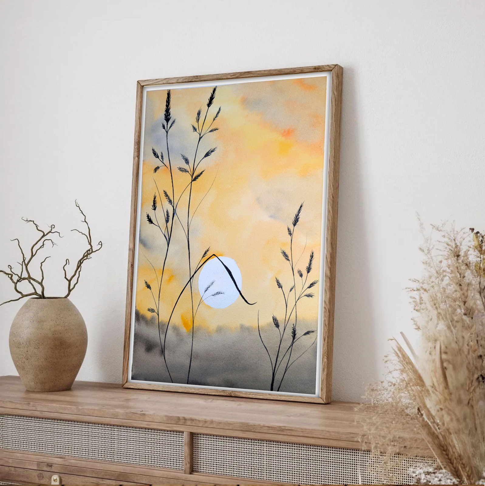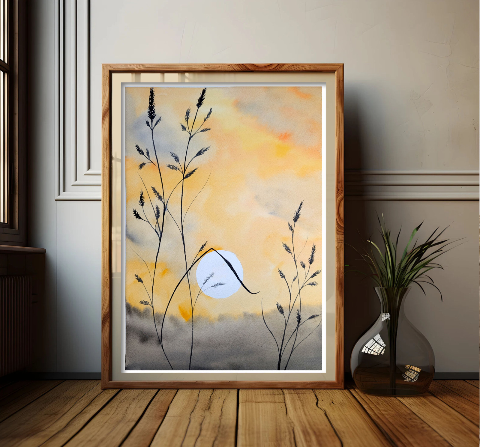 Akwarela A3. Zachód słońca na łące