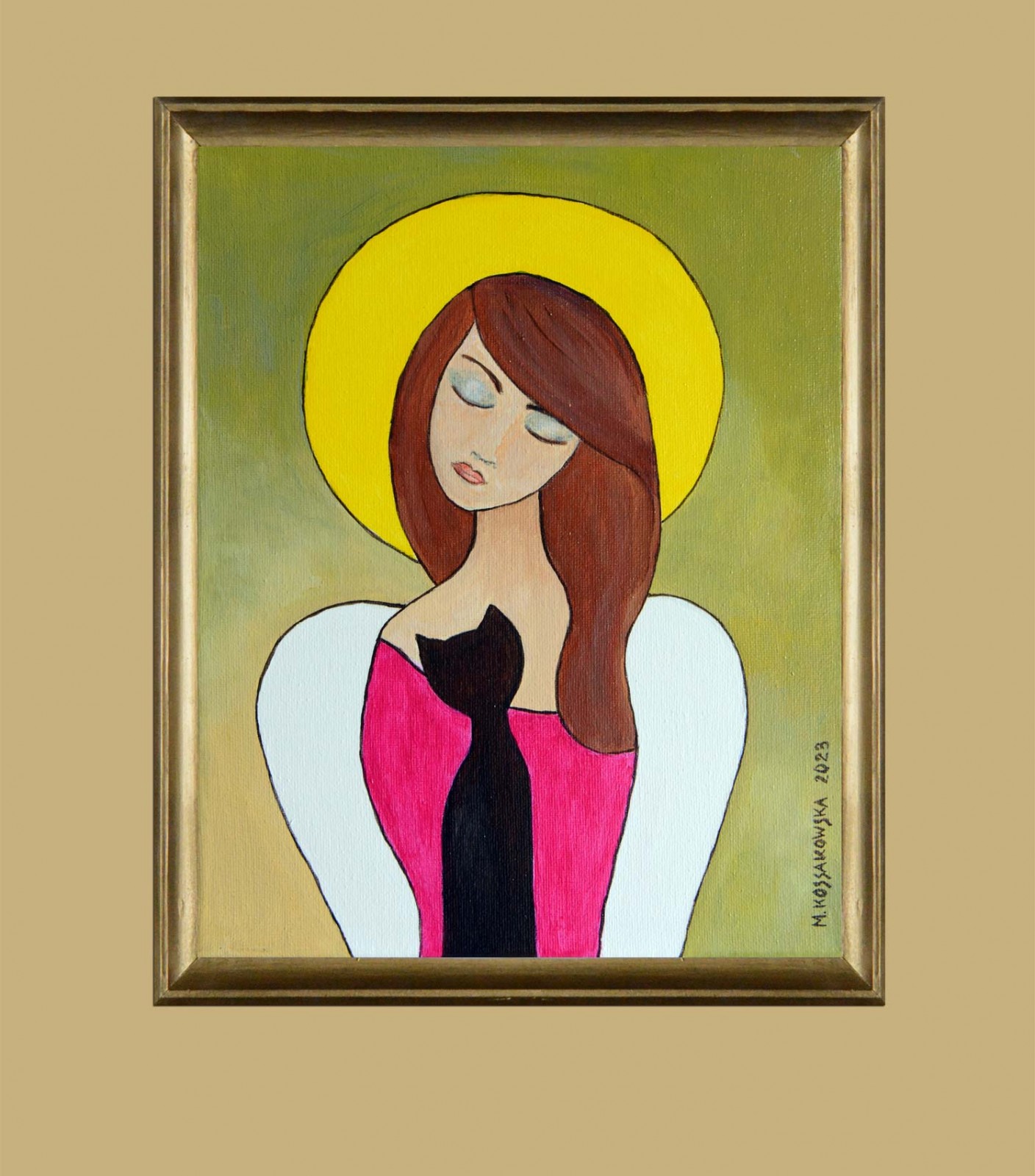Obraz akrylowy pokryty werniksem błyszczącym. Boki zamalowane, rozmiar 24x30, gotowy do zawieszenia lub oprawy.