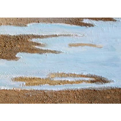 Obraz akrylowy połączony z materią - piasek. Pokryty werniksem. Wielkość 50x70.