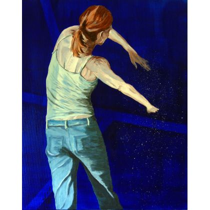 Obraz z tanczaca dziewczyna namalowany farbami akrylowymi na tablicy malarskiej o wymiarach 33x41cm