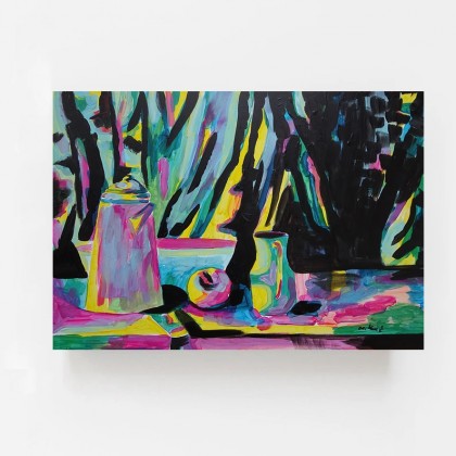 Obraz namalowany akrylami na płycie o wymiarach: 30/42 cm, sygnowany z przodu. Jest to moja autorska kompozycja. Świetnie może być eksponowany w nowoczesnych wnętrzach o stonowanej kolorystyce. Swoimi barwami może rozjaśnić takie wnętrza, w oświetleniu dziennym, jak i sztucznym. Idealny na prezent.