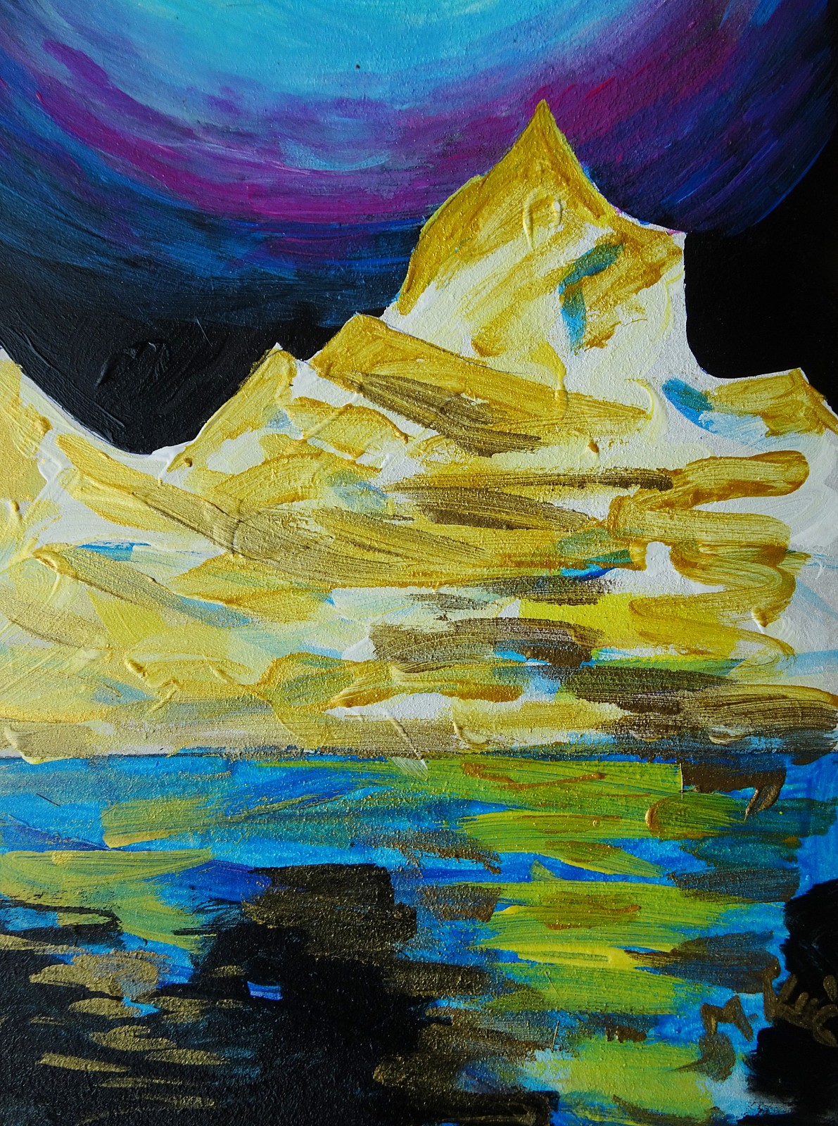 Obraz namalowany akrylami na płycie o wymiarach: 21/29 cm, sygnowany z przodu. Jest to moja autorska kompozycja. Świetnie może być eksponowany w nowoczesnych wnętrzach o stonowanej kolorystyce. Swoimi barwami może rozjaśnić takie wnętrza, w oświetleniu dziennym, jak i sztucznym. Idealny na prezent.