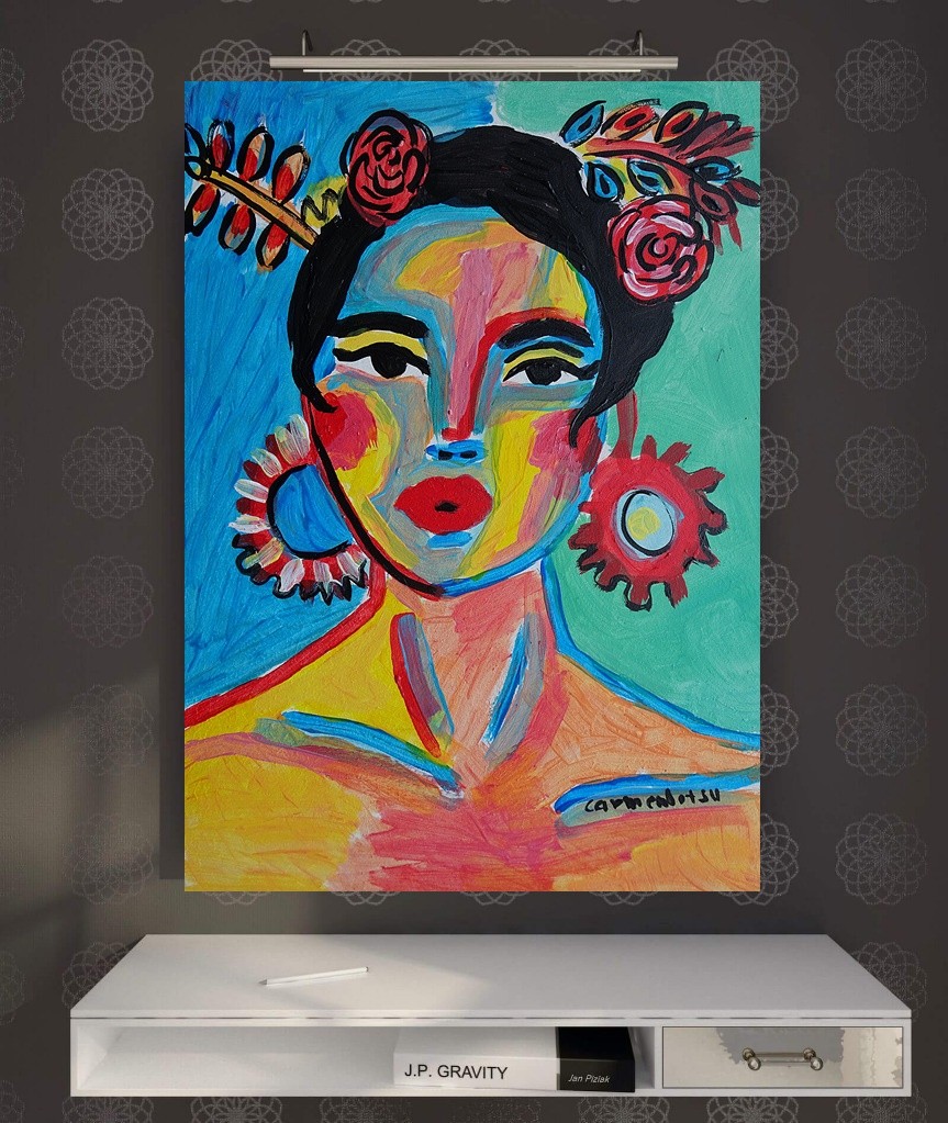 Obraz namalowany akrylami na płycie o wymiarach: a4, 21/29,7 cm, sygnowany z przodu. Jest to moja autorska kompozycja. Świetnie może być eksponowany w nowoczesnych wnętrzach o stonowanej kolorystyce. Swoimi barwami może rozjaśnić takie wnętrza, w oświetleniu dziennym, jak i sztucznym.