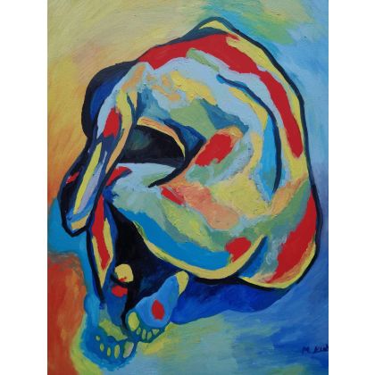 Obraz namalowany farbą akrylową oraz olejną na desce o wymiarach: 30/40 cm, sygnowany z przodu.