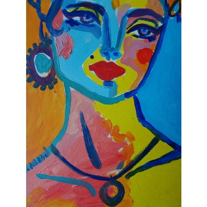 Obraz namalowany olejami na płycie o wymiarach: a4, 21/29,7 cm, sygnowany z przodu. Jest to moja autorska kompozycja. Świetnie może być eksponowany w nowoczesnych wnętrzach o stonowanej kolorystyce. Swoimi barwami może rozjaśnić takie wnętrza, w oświetleniu dziennym, jak i sztucznym.