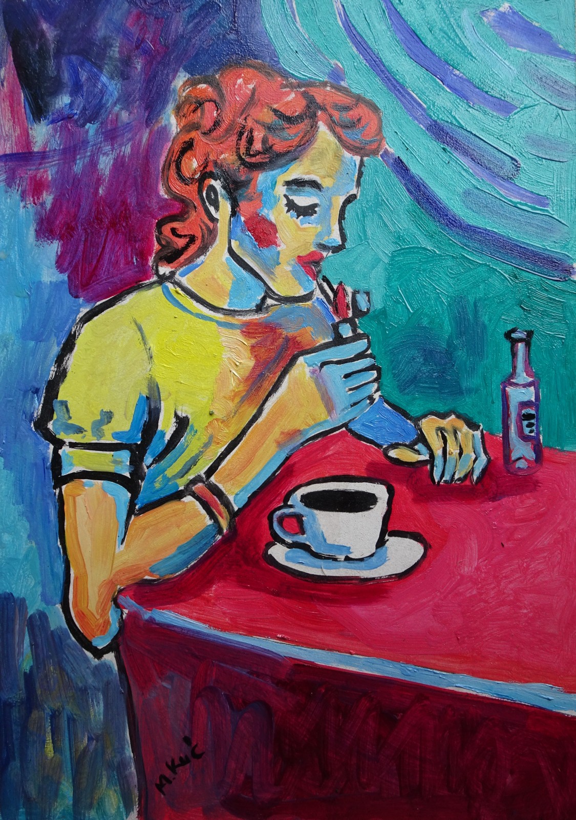 Obraz namalowany olejami na płycie o wymiarach: 21/29 cm, sygnowany z przodu. Jest to moja autorska kompozycja. Świetnie może być eksponowany w nowoczesnych wnętrzach o stonowanej kolorystyce. Swoimi barwami może rozjaśnić takie wnętrza, w oświetleniu dziennym, jak i sztucznym.