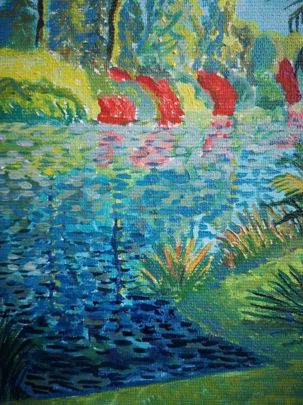 Obraz namalowany techniką olejną, na płótnie o wymiarach: 18/24 cm. Boki obrazu są zamalowane, nie wymaga oprawy. Sygnowany jest z tyłu na blejtramie lub z przodu na życzenie klienta.