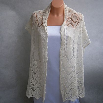 Elegancki, ciepły, ażurowy szal wykonany z wysokogatunkowej przędzy (50% alpaki, 50% wełny). Szlachetny splot sprawia, że włóczka jest ciepła i nie gryzie :).