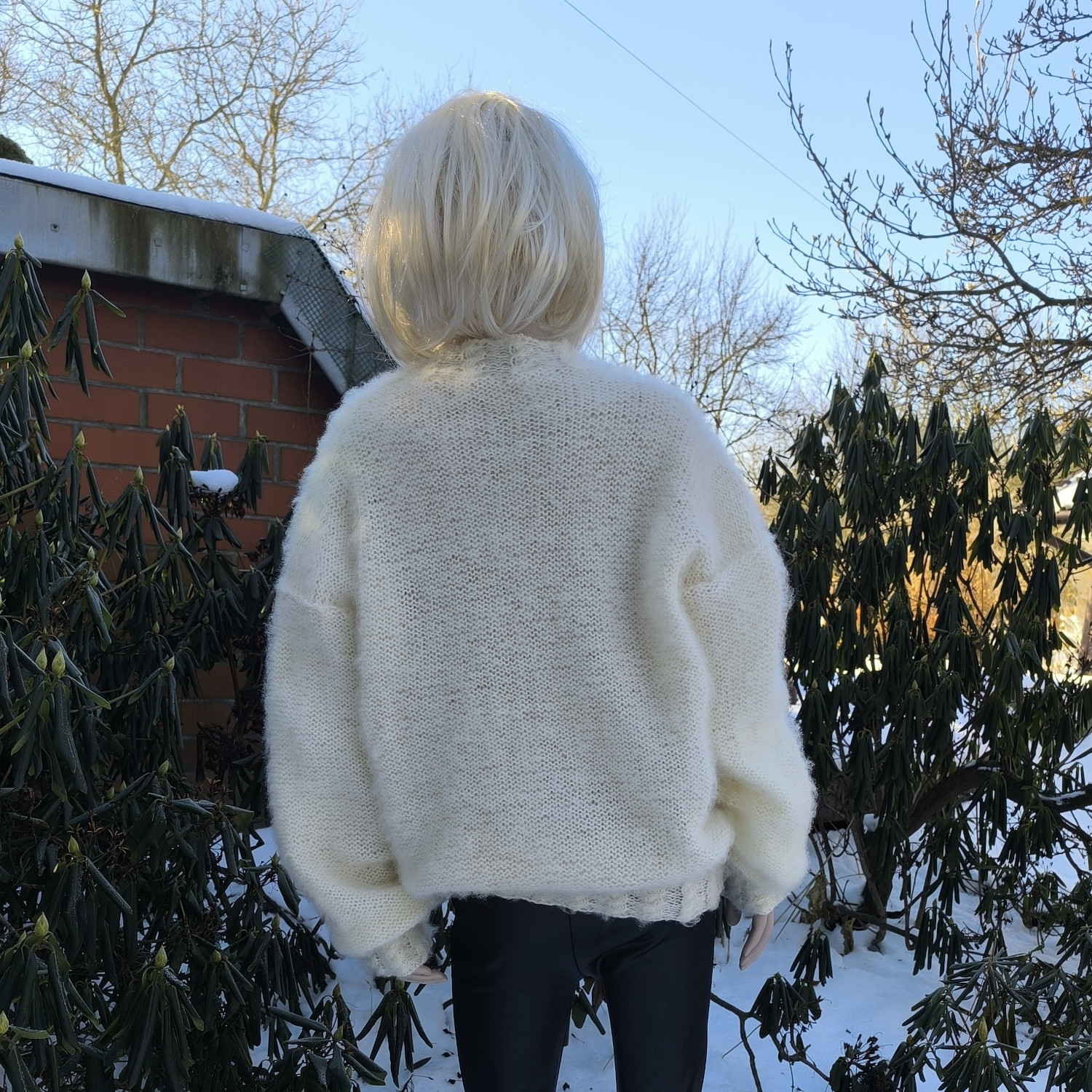 W całości ręcznie robiony z wysokogatunkowej włóczki angorkowej, zachwyca lekkością, miękkością i subtelnym ciepłem.