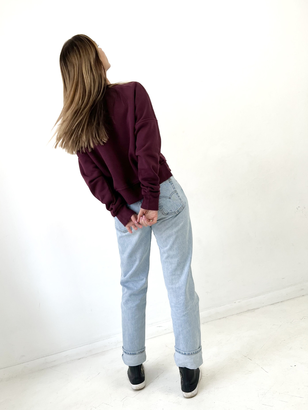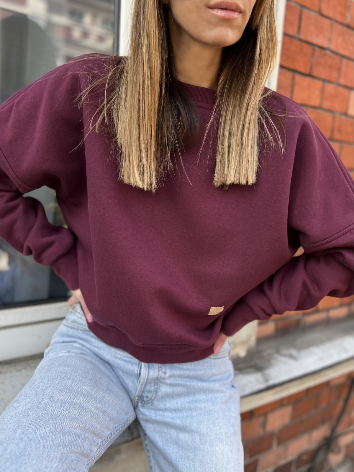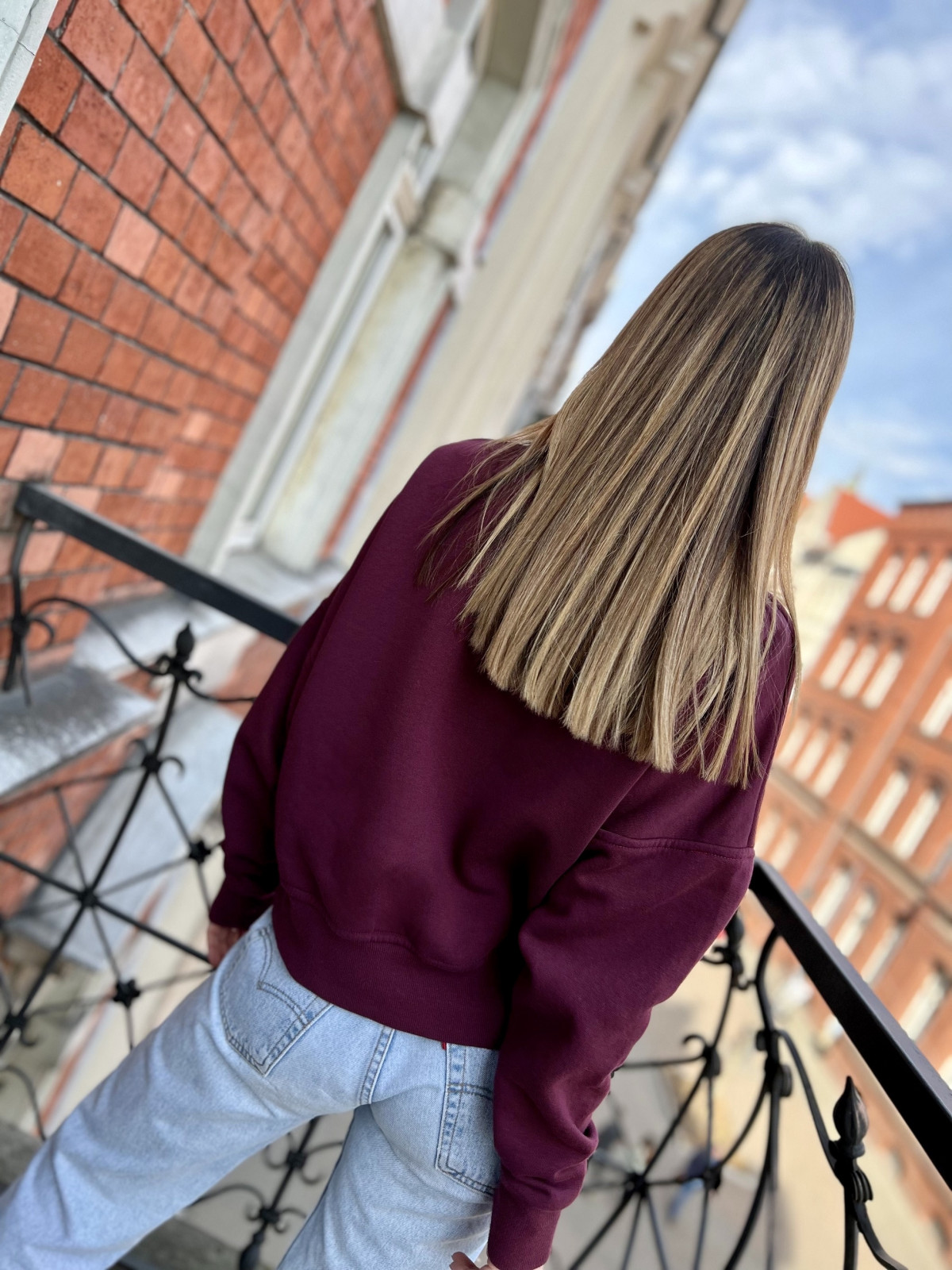 Ocieplana, bawełniana bluza oversize, w ponadczasowym, burgundowym kolorze.