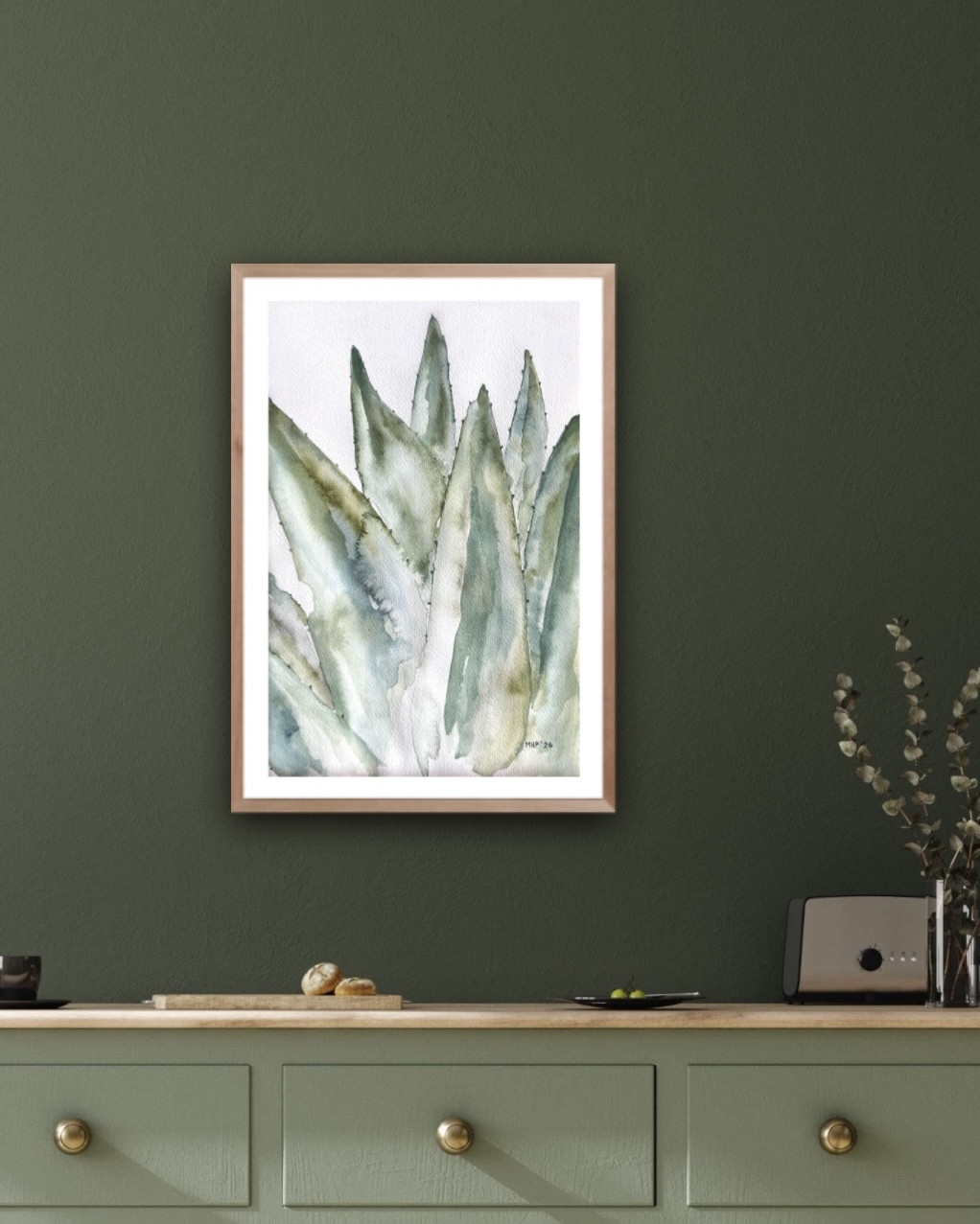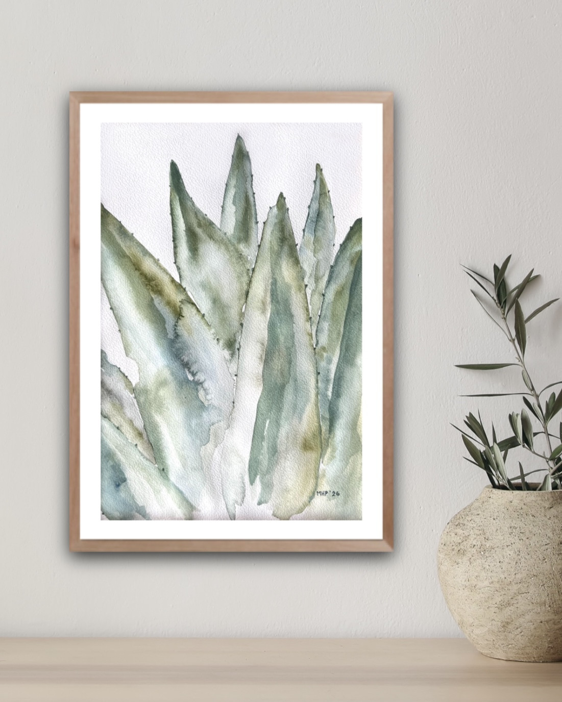 Aloes to oryginalna akwarela namalowana na profesjonalnym papierze akwarelowym. Format a4. Praca jest sygnowana z przodu oraz podpisana z tyłu.