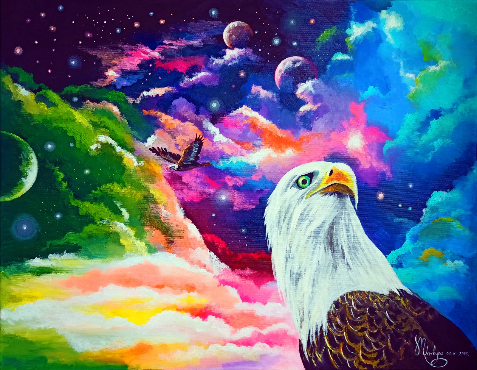 Surrealistyczny obraz namalowany farbami akrylowymi na płóciennym podobraziu. Praca nie wymaga ramy, boczne krawędzie płótna zamalowane - kontynuacja obrazu. Obraz jest zakonserwowany satynowym werniksem, sygnowany w prawym dolnym rogu imieniem oraz datą ukończenia. Dzięki właściwościom farb akrylowych i werniksu, obraz posiada długoletnią trwałość od pęknięć, zżółknięć i blaknięcia farby.