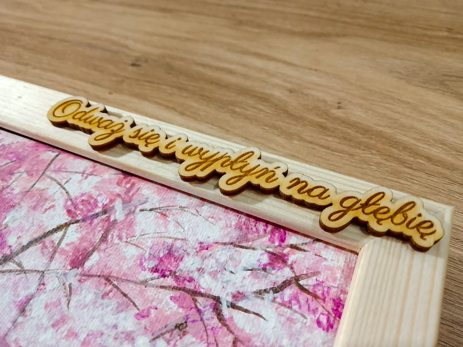 GOTOWY PEJZAŻ NA PREZENT - RĘCZNIE MALOWANY OBRAZ PULS W RÓŻU Z RAMĄ I MOTTO