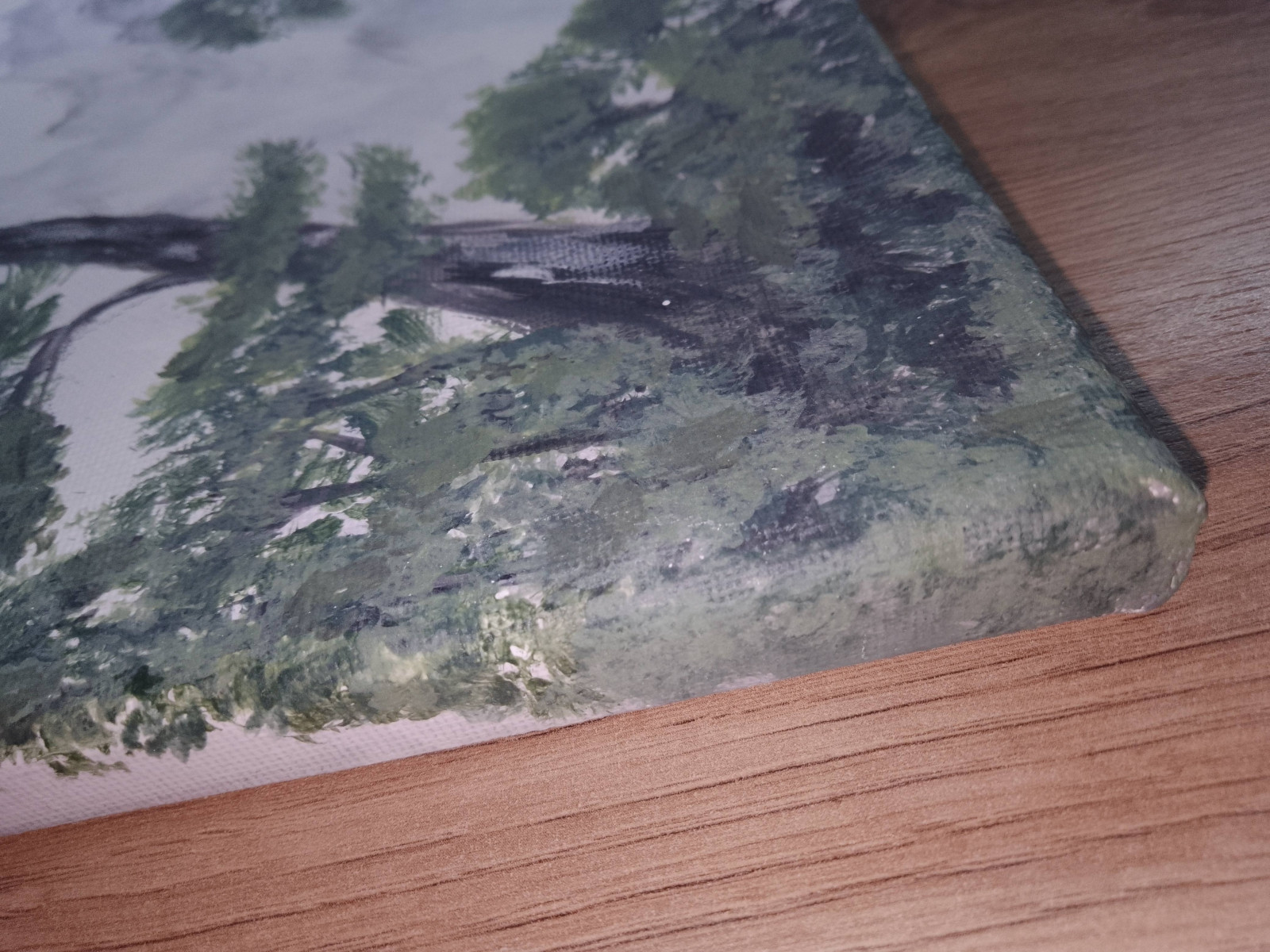 PEJZAŻ AKRYLOWY RĘCZNIE MALOWANY NA PŁÓTNIE PÓŁCIENIE CISZY - 30x24cm (darmowa dostawa)