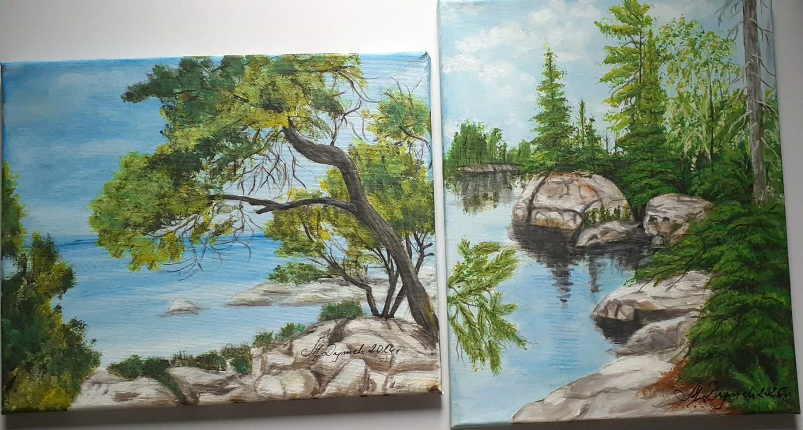 ZESTAW PEJZAŻY RĘCZNIE MALOWANYCH NA PŁÓTNIE KAMIENNE SZEPTY