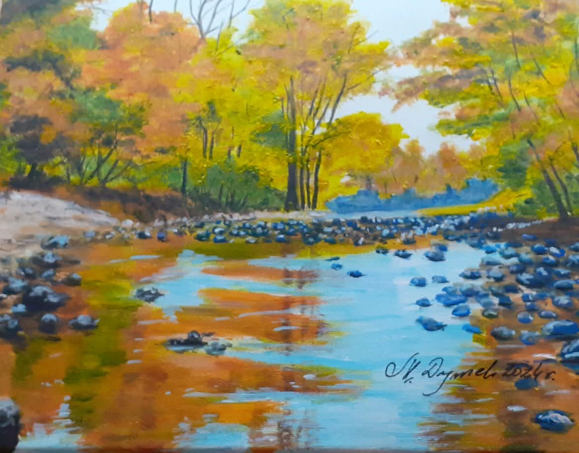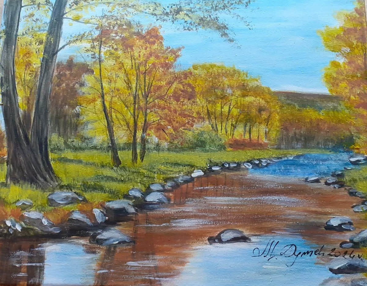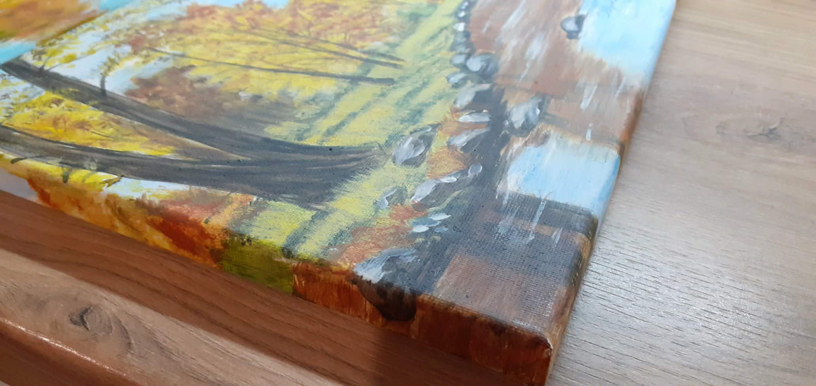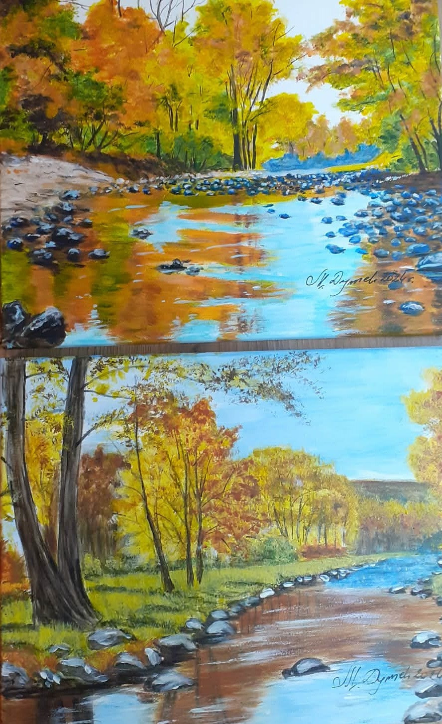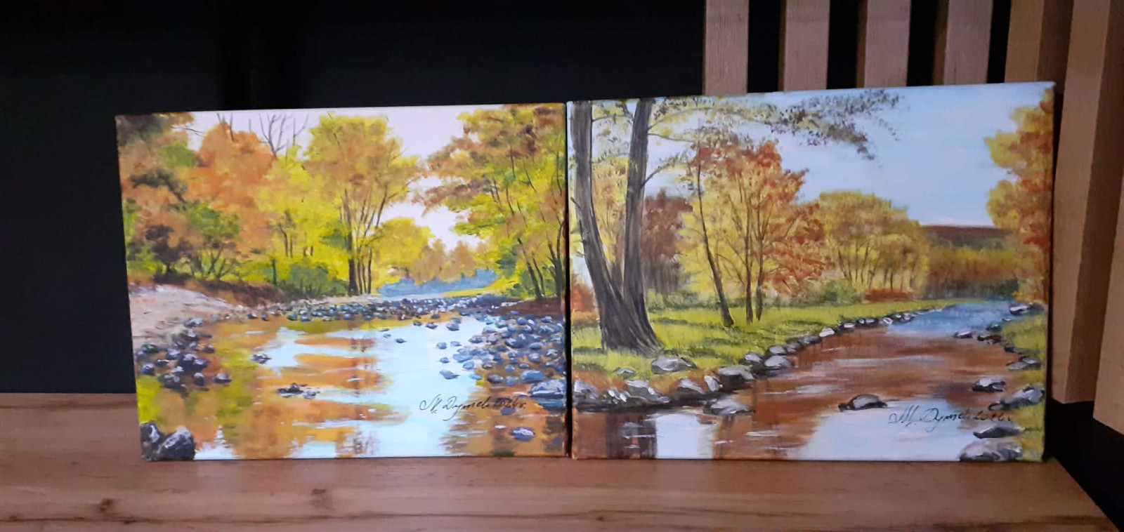 ZESTAW RĘCZNIE MALOWANYCH OBRAZÓW - DYPTYK JESIEŃ NAD POTOKIEM
