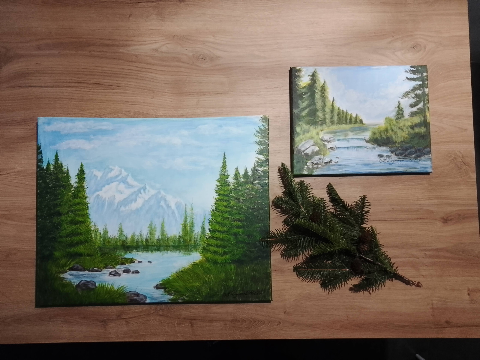 ZESTAW RĘCZNIE MALOWANYCH OBRAZÓW - WIOSENNO-LETNI PEJZAŻ GÓRSKI, 1 obraz GRATIS!