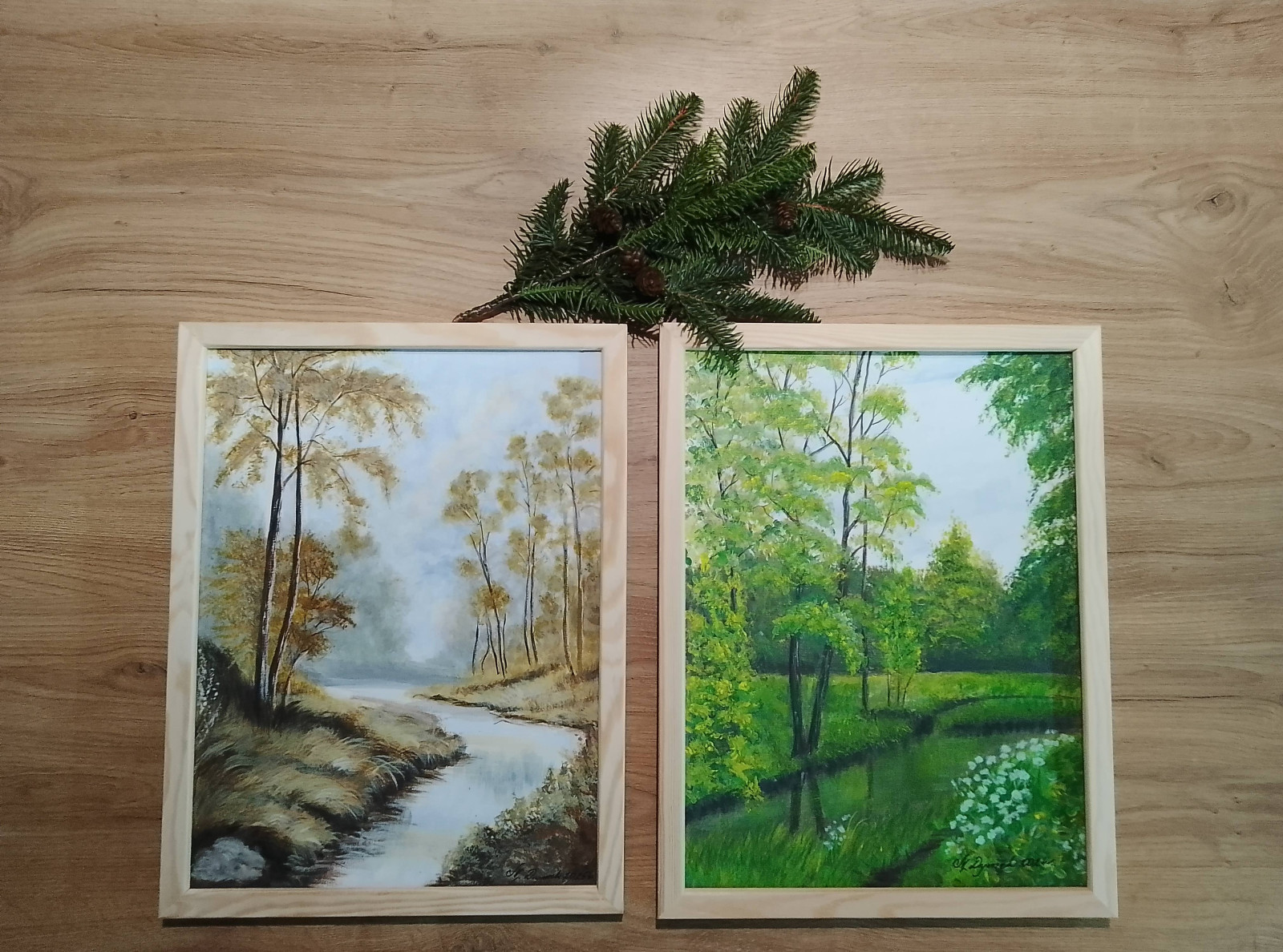 ZESTAW RĘCZNIE MALOWANYCH OBRAZÓW Z RAMAMI - DYPTYK: MAGICZNA WIOSNA-JESIEŃ