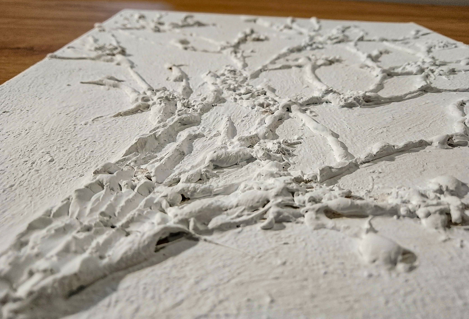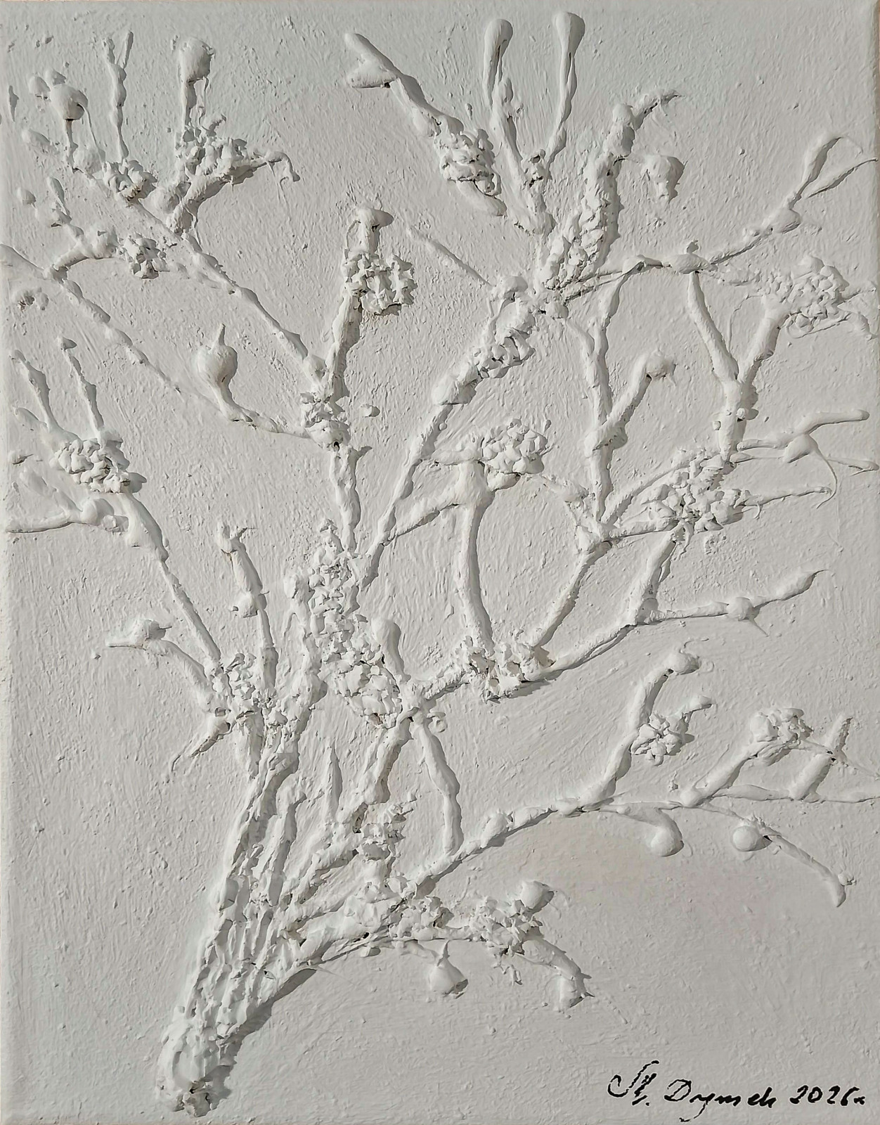 - Technika malarska mieszana: strukturalno-akrylowa - wyraźna faktura przy użyciu pasty strukturalnej tworzy efekt rzeźbiarski