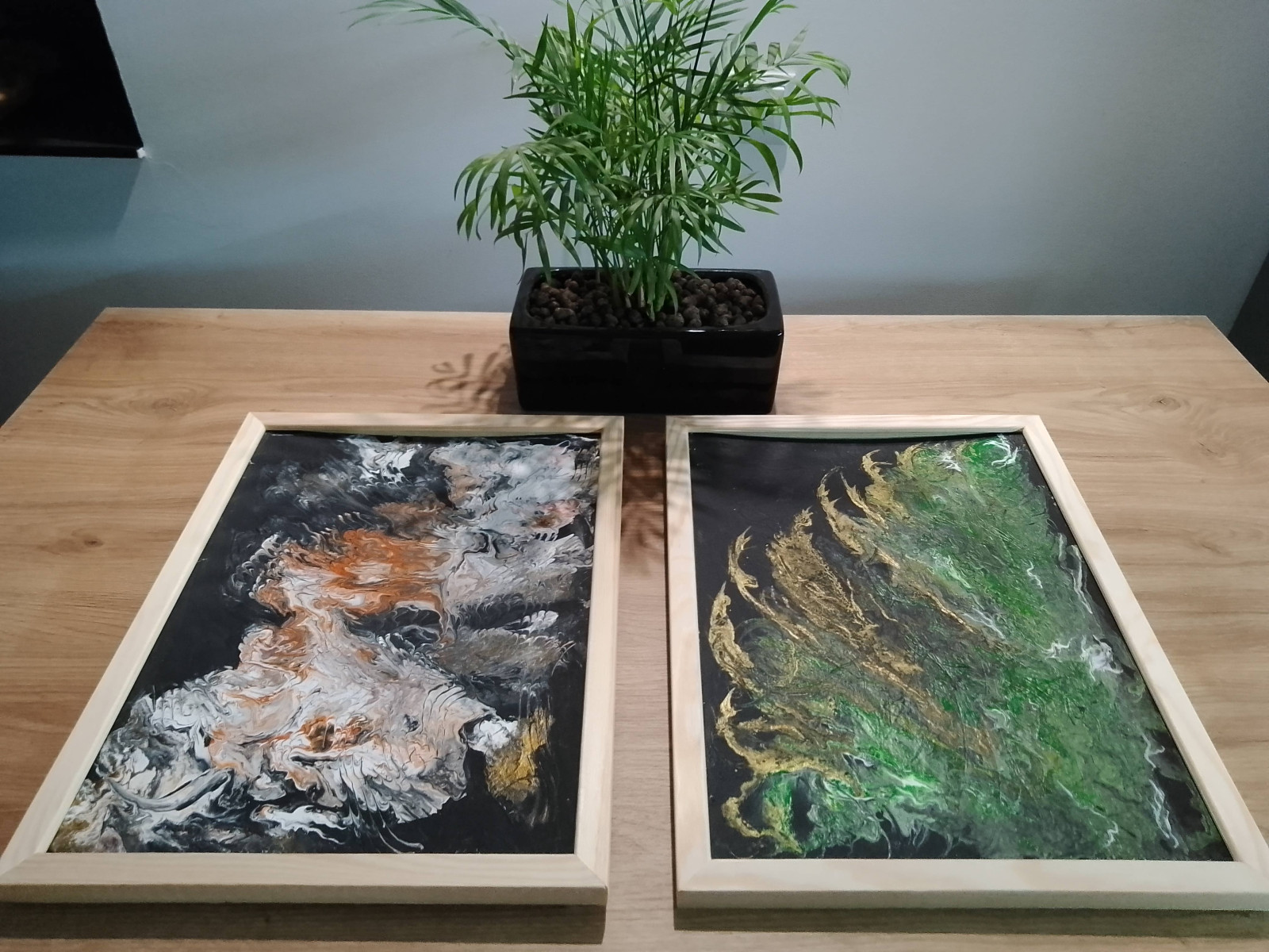 ZESTAW RĘCZNIE MALOWANYCH OBRAZÓW Z RAMAMI - DYPTYK: MISTYCZNY POURING