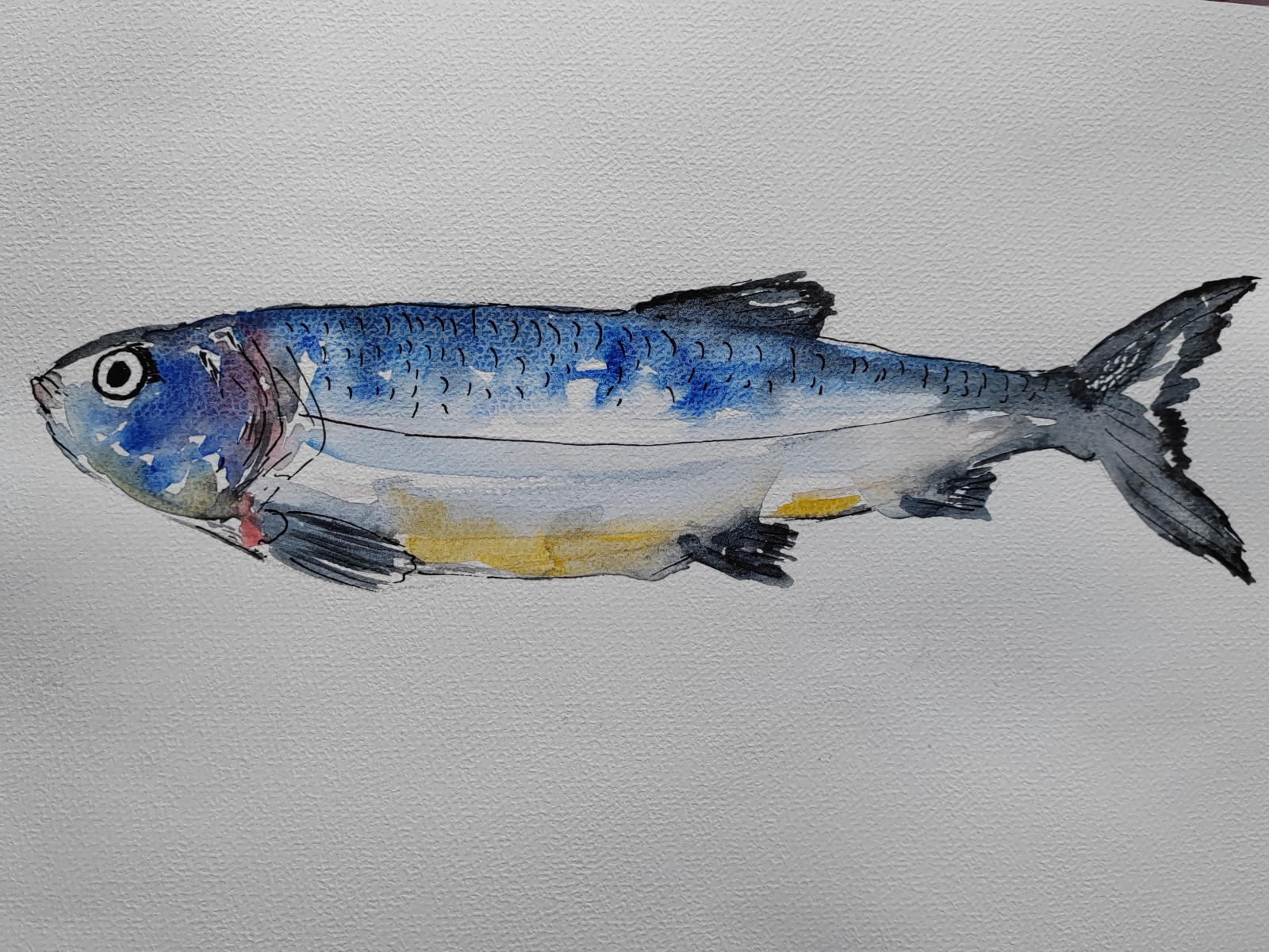 Akwarela, ryby, formatu A4, gramatura papieru 300 g. Sygnowana