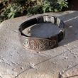 Manela z bindruną. Zrobiona jest z miedzi trawionej, cynowanej, patynowanej i przecieranej oraz skórzanych rzemieni w kolorze czarnym, okrągłych gr. 4 mm. Elementy ozdobne i zapięcie również zrobione są z cynowanej miedzi.
