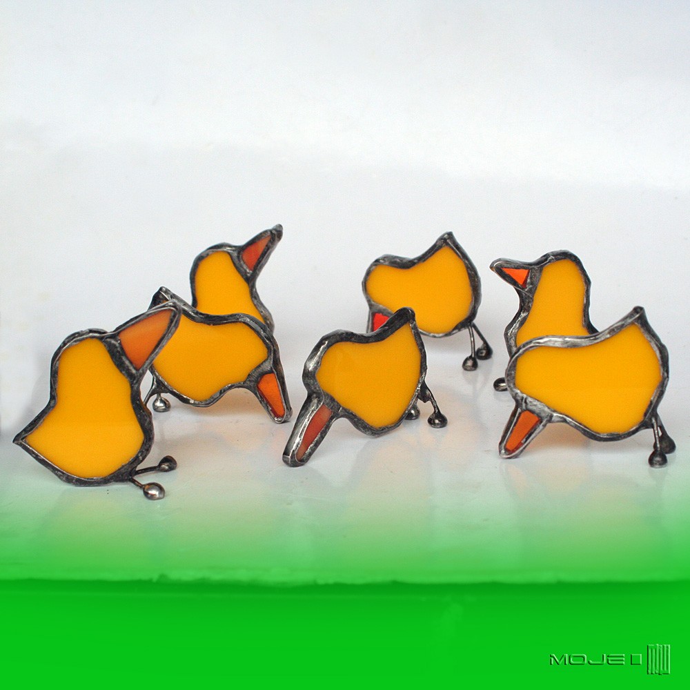 Zrobiłam je z bananowo-żółtego szkła witrażowego i miedzi - cynowanej, patynowanej i przecieranej.