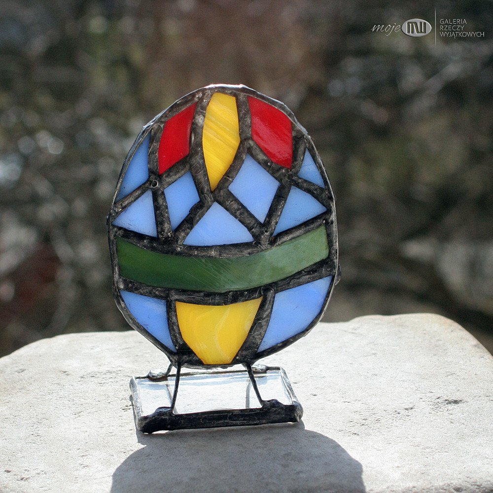 Dekoracyjne, witrażowe, stojące jajo-pisanka.