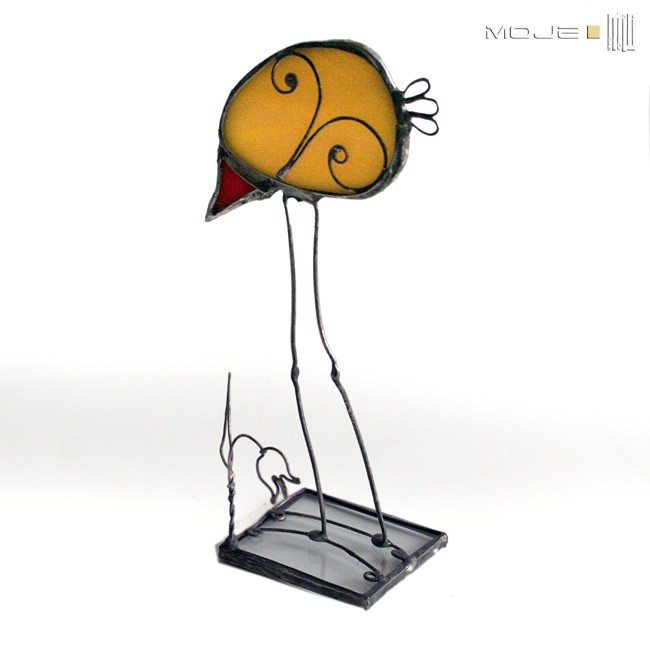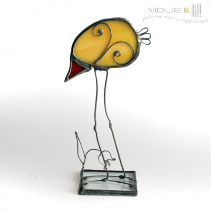 Dekor świąteczny - żółty szklany kurczak, zrobiony witrażową metodą Tiffany.