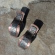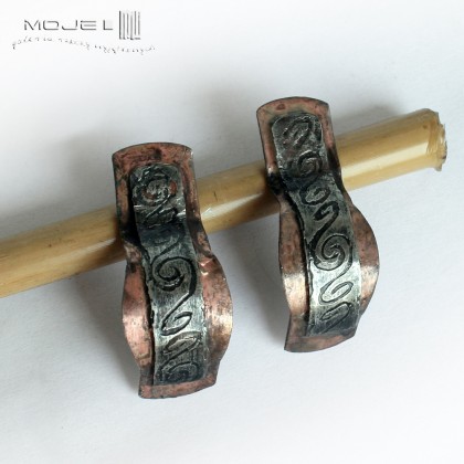 Zrobiłam je z miedzianej blachy pokrytej cyną, patynowanej i przecieranej dla wydobycia wzoru. Są nieco surowe i rustykalne.