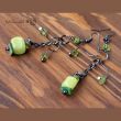 Długie wiosenne kolczyki w kolorach świeżej zieleni, z marmurowym limonkowym kamieniem i małymi perydotami. Całość wykończona elementami ze stali i metalu w kolorze grafitowym.