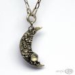 Wisior z księżycem, który porosły kwiaty... Wykonany jest ze srebra próby min. 925 - oksydowany i przecierany. Kamień księżycowy podkreśla łączność wisiora z naszym największym satelitą. Zawieszony na łańcuszku srebrnym 925 o dł. 50 cm