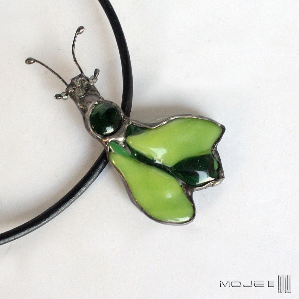 Żuk z nieprzejrzystego szkła w odcieniach jasnej i ciemnej zieleni wytopiony metodą fusingu.