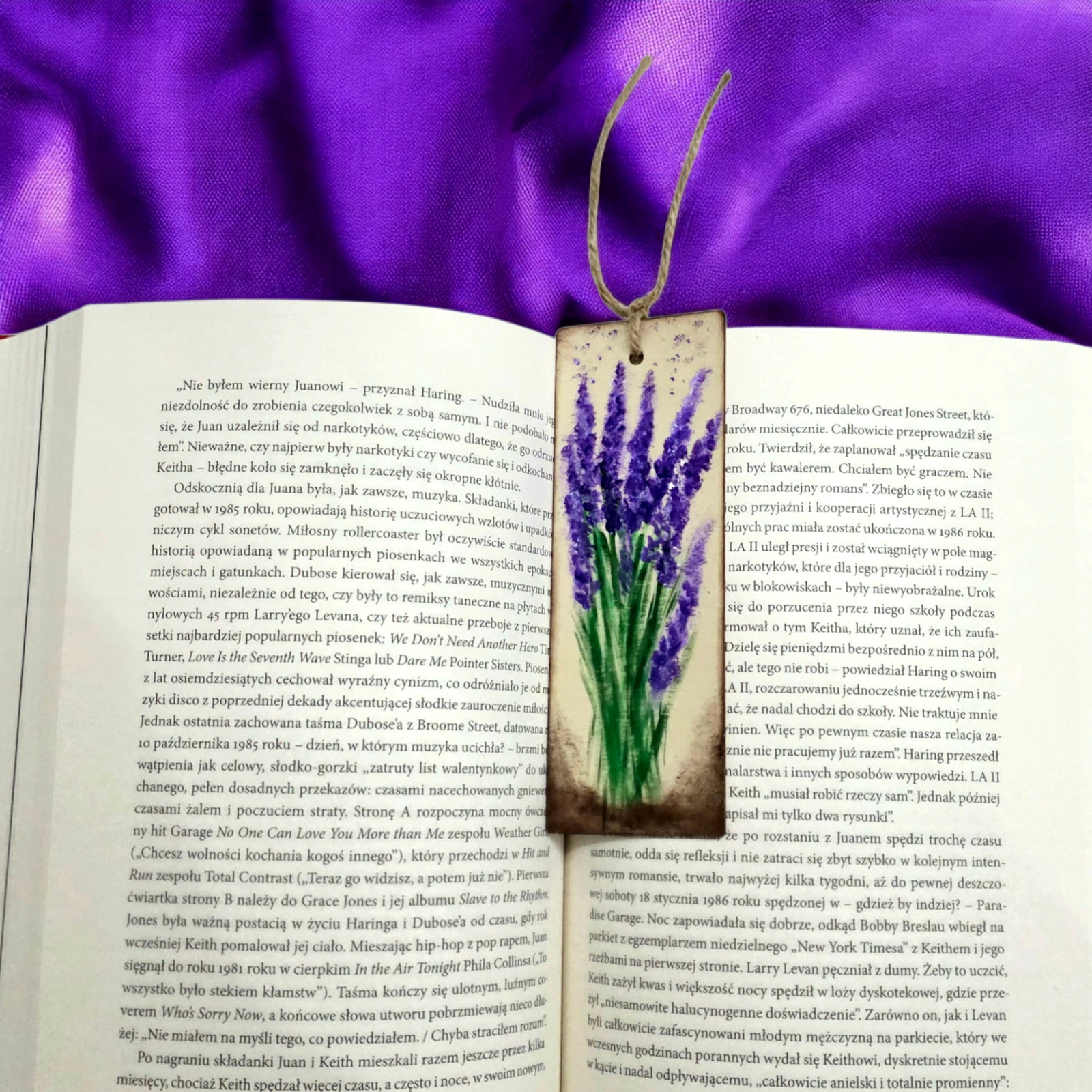 Zakładka do książki, malowana farbami akrylowymi na sklejce o wymiarach 14x5 cm.