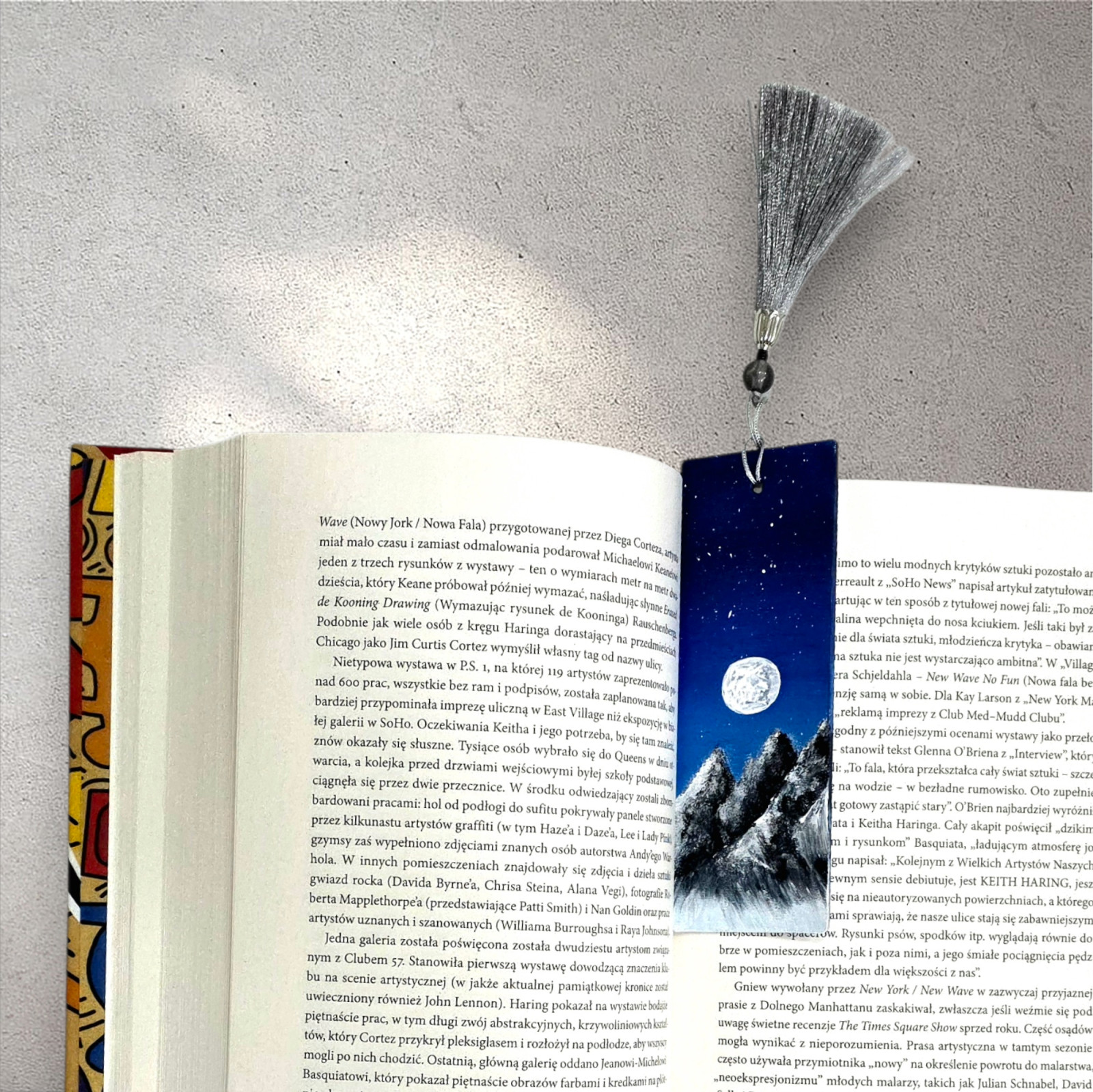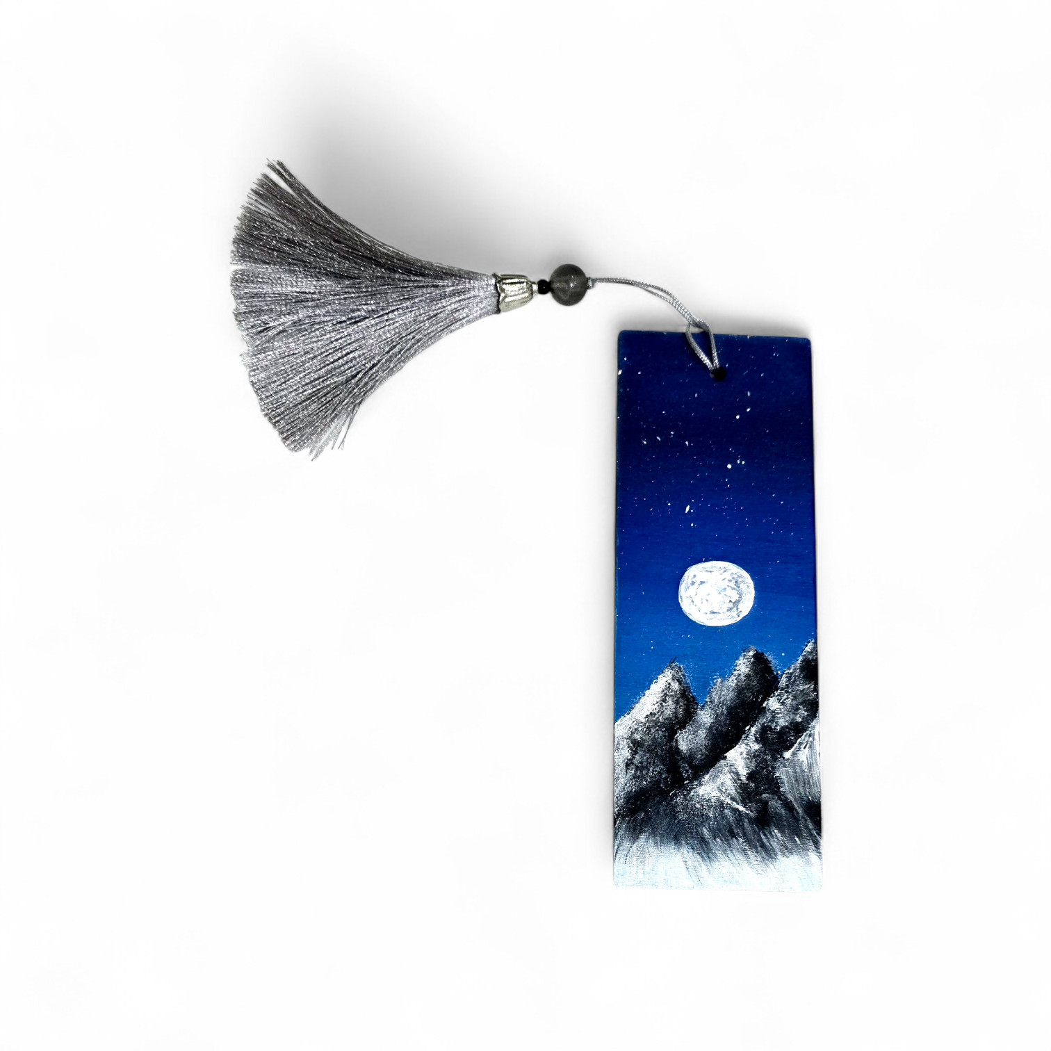 Zakładka do książki, malowana farbami akrylowymi na sklejce o wymiarach 14x5 cm.