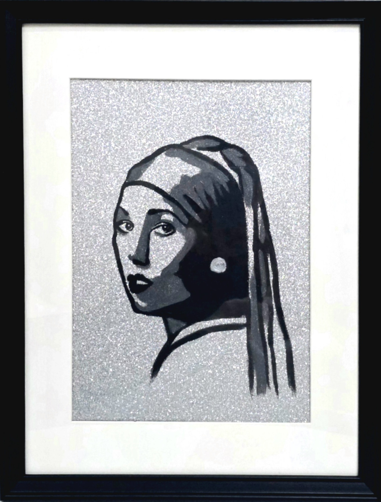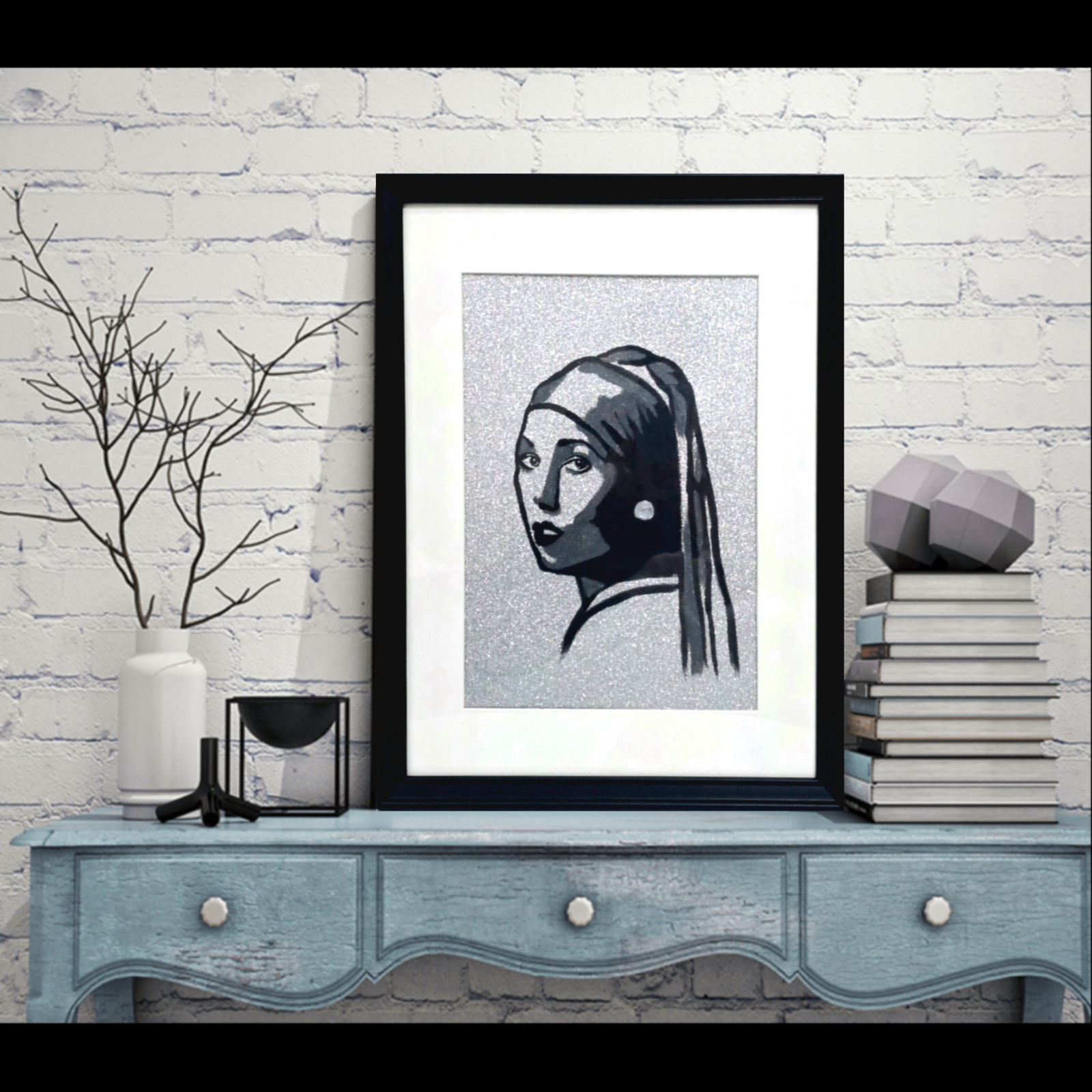 Obraz akrylowy na brokatowej tablicy malarskiej. Pięknie się mieni. Rozmiar ramy :42.5x 32.5. Sprzedawany w ramie.