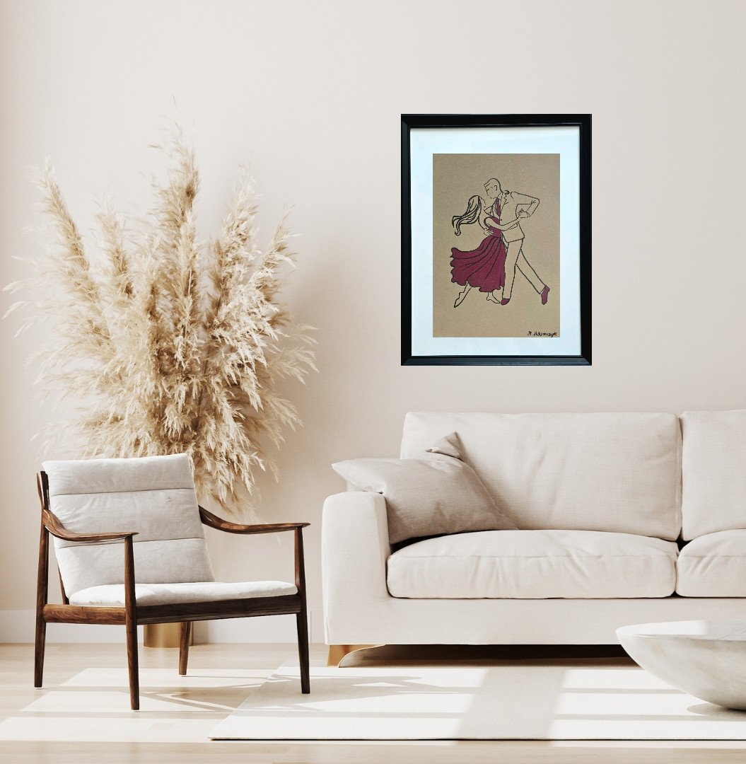 Obraz line art, wykonany cienkopisami na papierze o wysokiej gramaturze. Sprzedawany w ramce jak na zdjęciu. Wymiary ramy: 40x30.