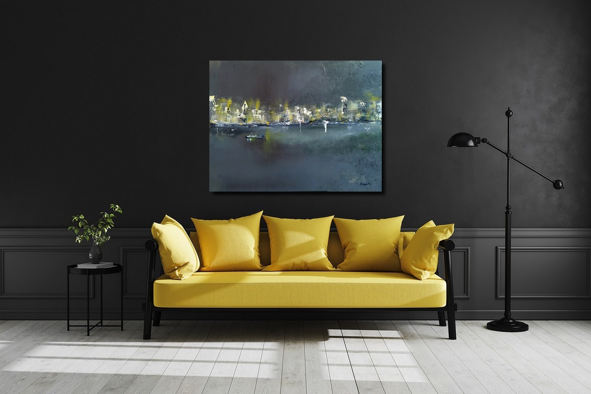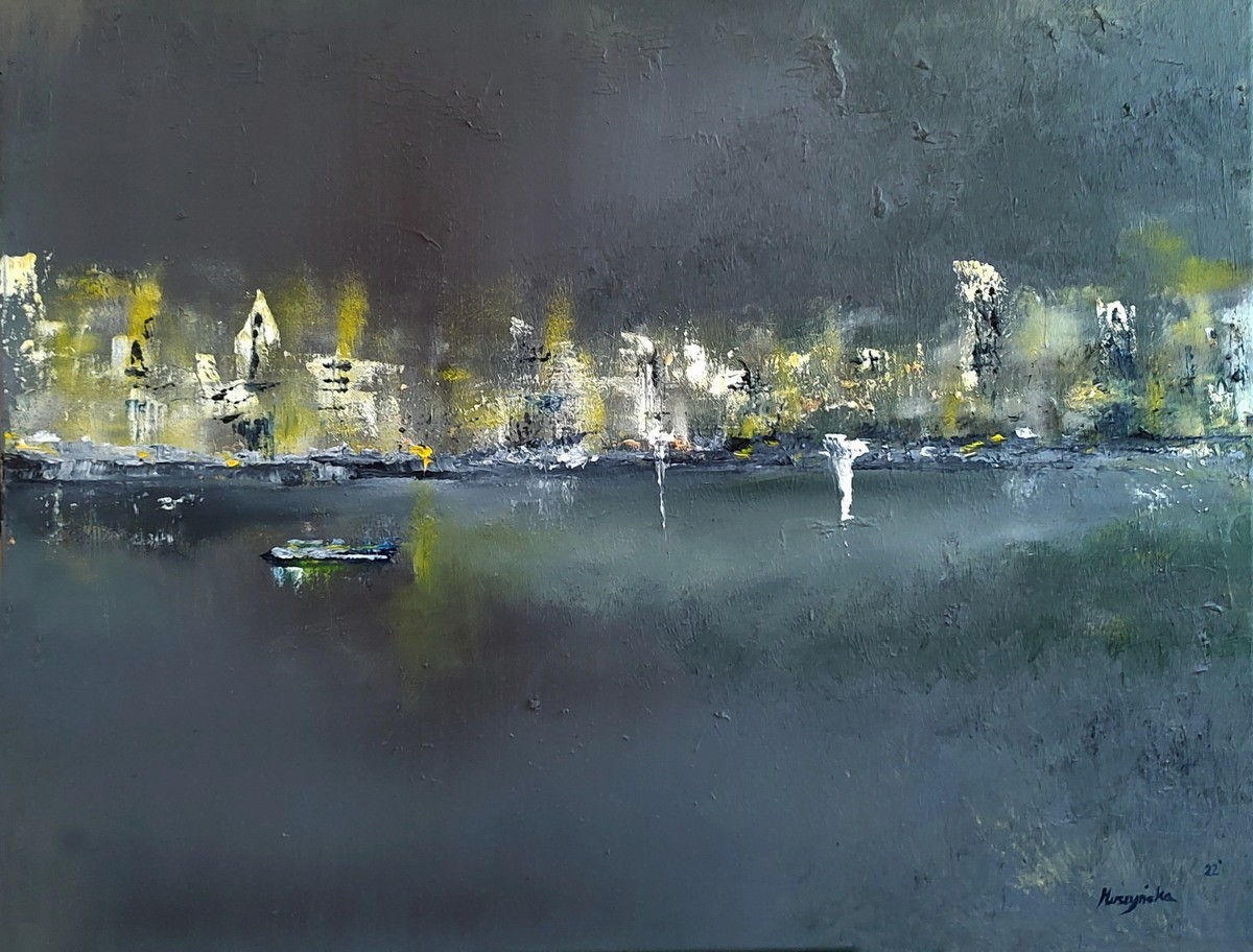 Obraz olejny - abstrakcja - pejzaż- Nocne
