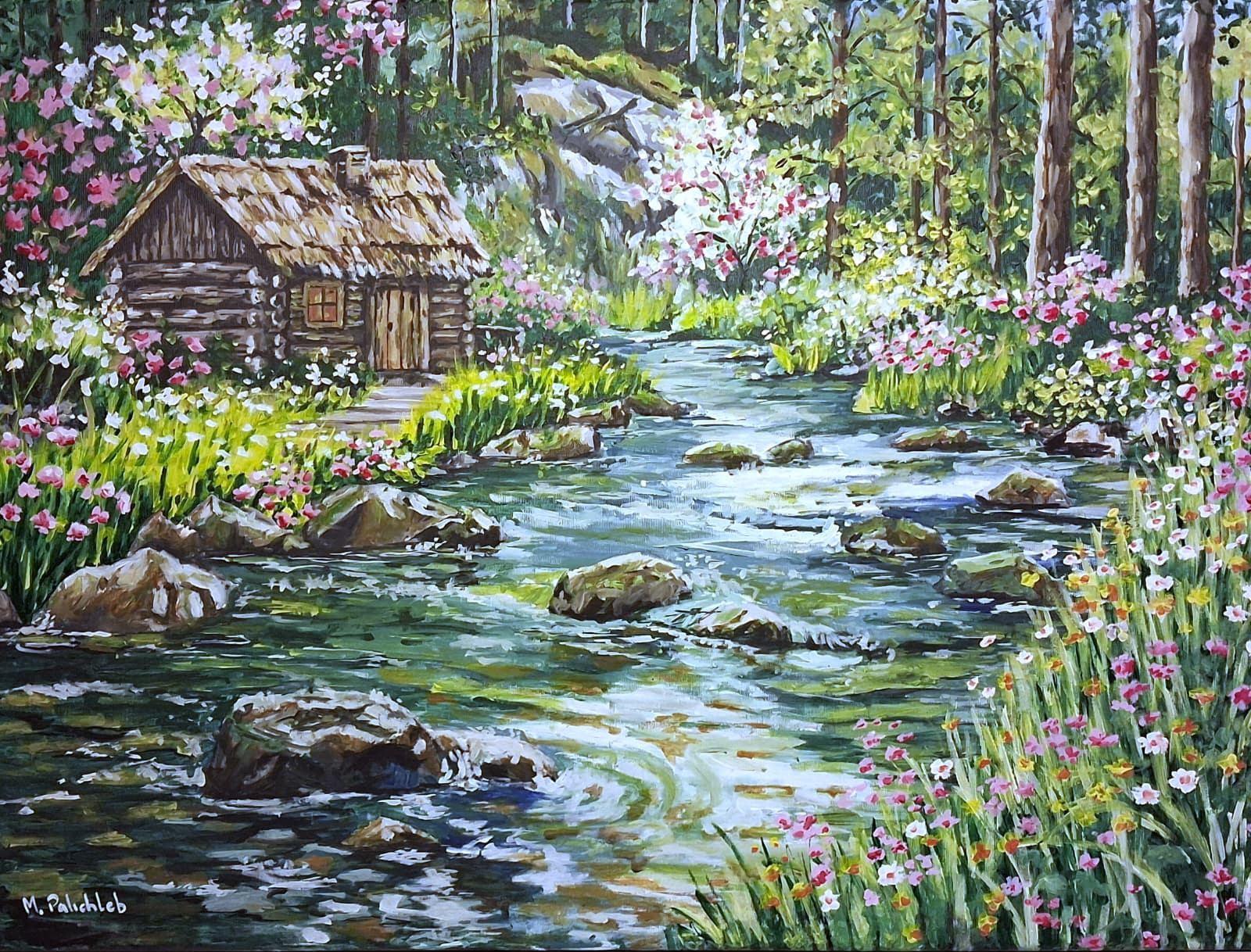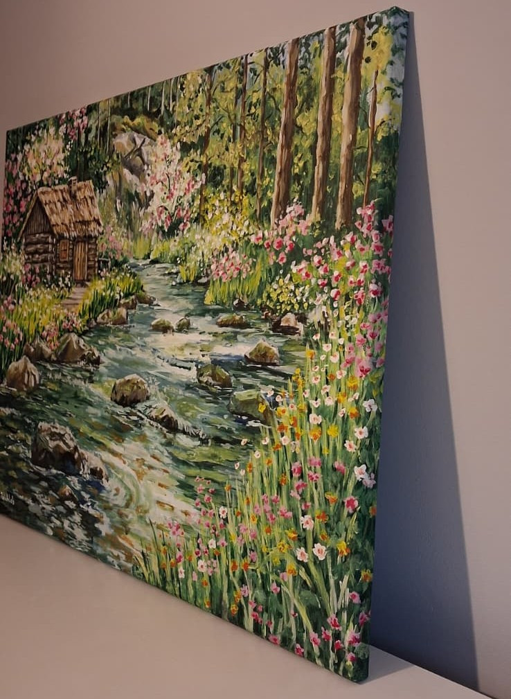 - malowany farbami akrylowymi na podobraziu bawełnianym PROFI