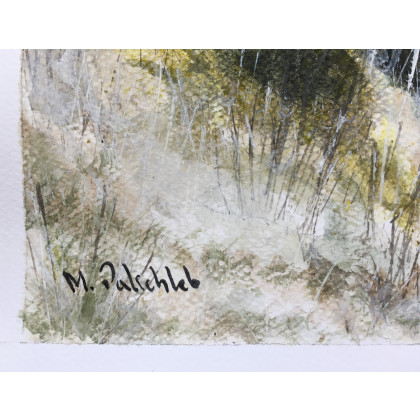 Obraz wykonany akwarelami + białą farbą akrylową na specjalnym papierze do techniki akwarelowej o gramaturze 300g/m2.