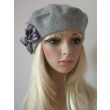 Klasyczny beret z wełny (100 % wełna) w kolorze szarym. Ozdobiony dobraną kolorystycznie kokardą w kratę. Rozmiar – 54-57 cm.