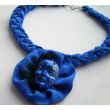 Plastyczny, oryginalny naszyjnik z Kolekcji Masquerade wykonany w pojedynczym egzemplarzu z delikatnego, naturalnego jedwabiu w nasyconej, chabrowej kolorystyce. Długość naszyjnika - około 46 cm. Wymiary elementu centralnego - około 7 cm. Naszyjnik jest bardzo lekki.