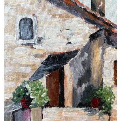 Prezentowany akrylowy obraz wiejskiego dziedzińca w Toskanii, rozmiar 40*30 cm, ręcznie malowany, strukturalny 3D, namalowany ekspresyjnie w bogatej, nasyconej kolorystyce. Doda każdemu wnętrzu niepowtarzalnej atmosfery. Serdecznie polecam.